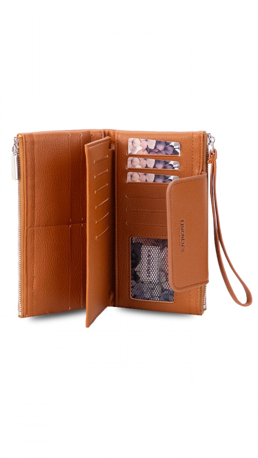 Elegante billetera larga con diseño práctico y completo . Incluye presilla con broche, correa de mano, múltiples tarjeteros internos y monedero con cierre. Perfecta para llevar tus esenciales con estilo y comodidad en cualquier ocasión.
