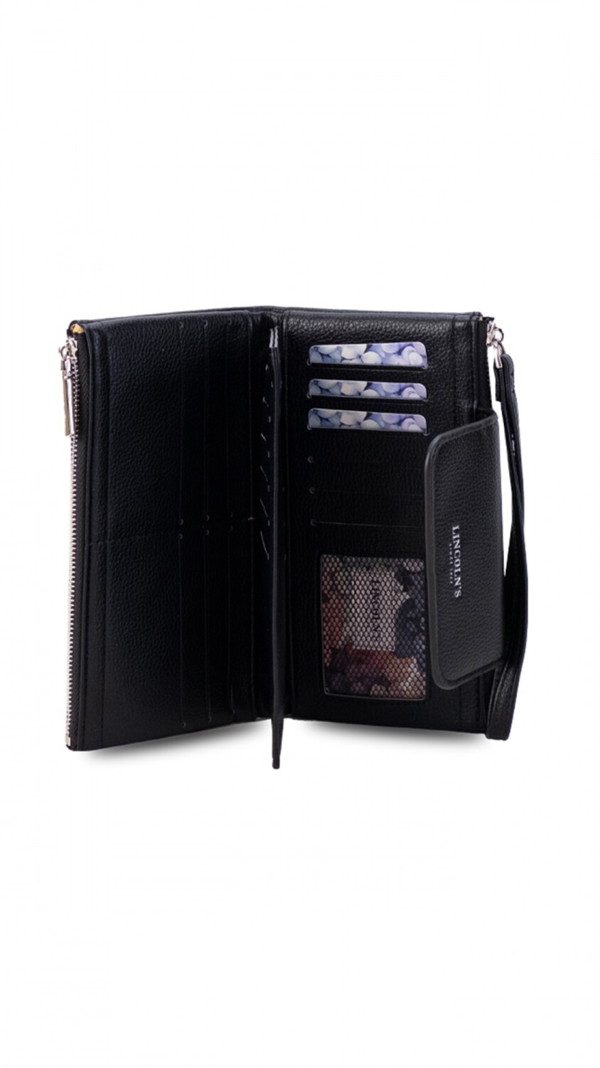 Elegante billetera larga con diseño práctico y completo . Incluye presilla con broche, correa de mano, múltiples tarjeteros internos y monedero con cierre. Perfecta para llevar tus esenciales con estilo y comodidad en cualquier ocasión.