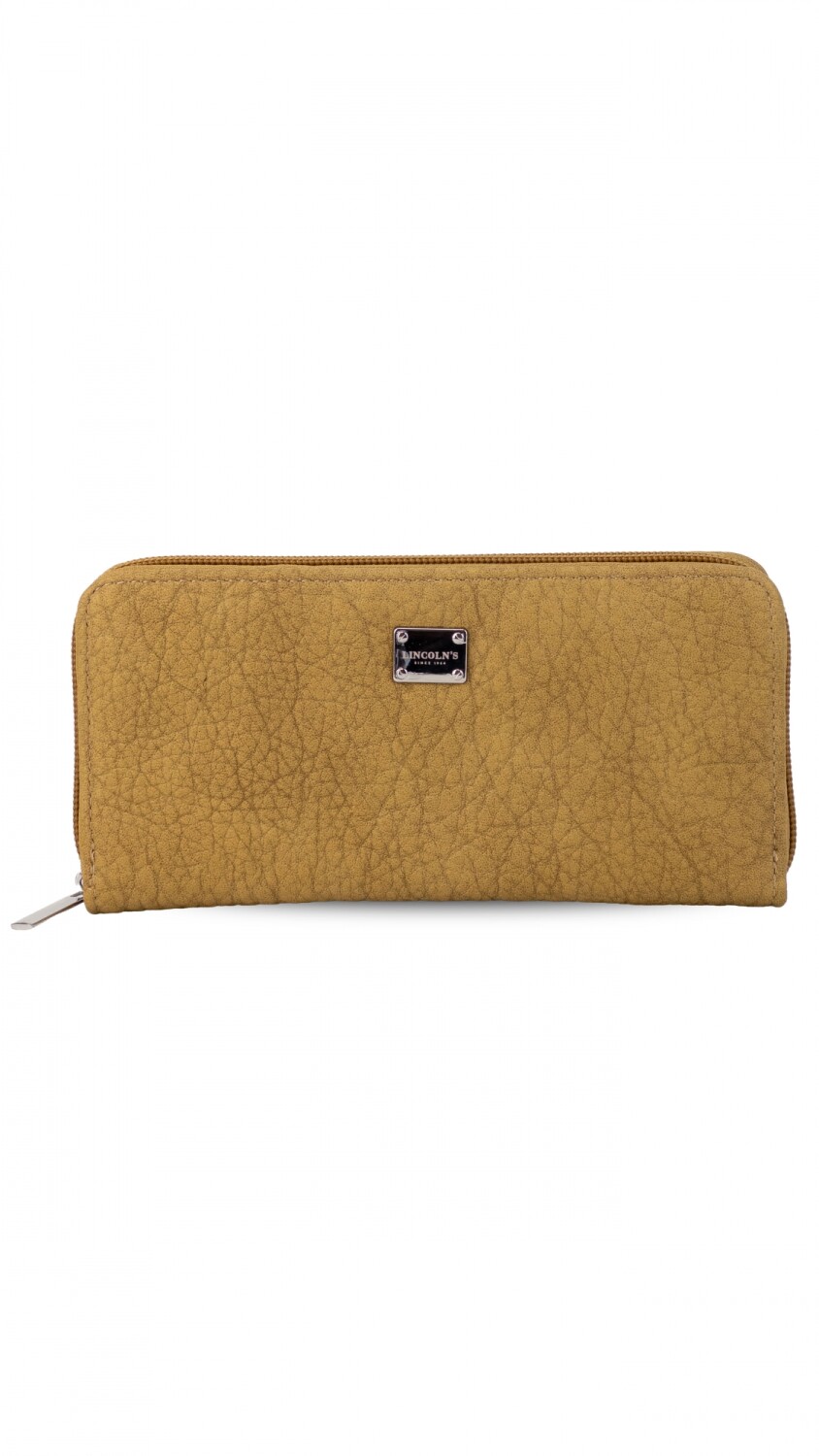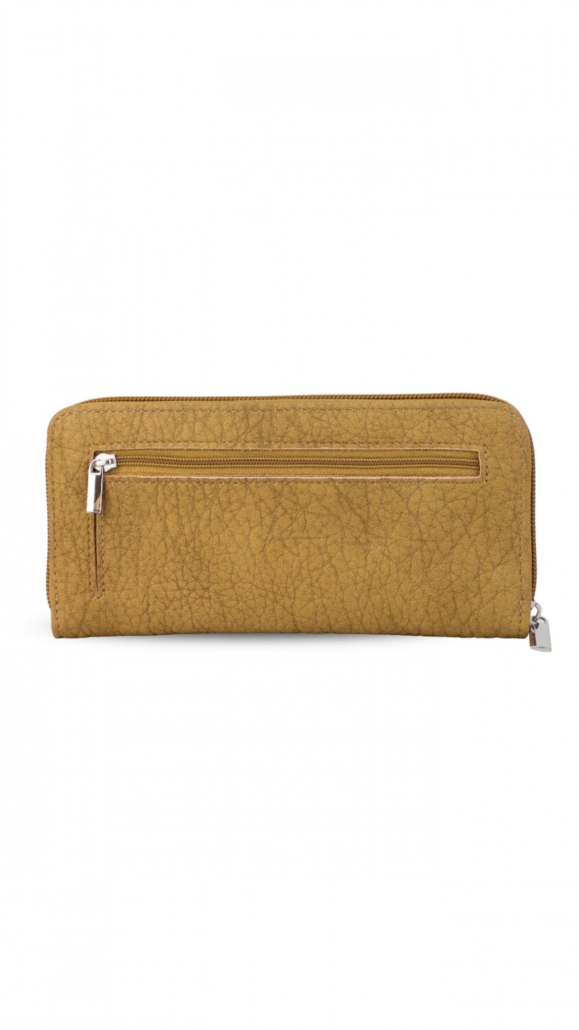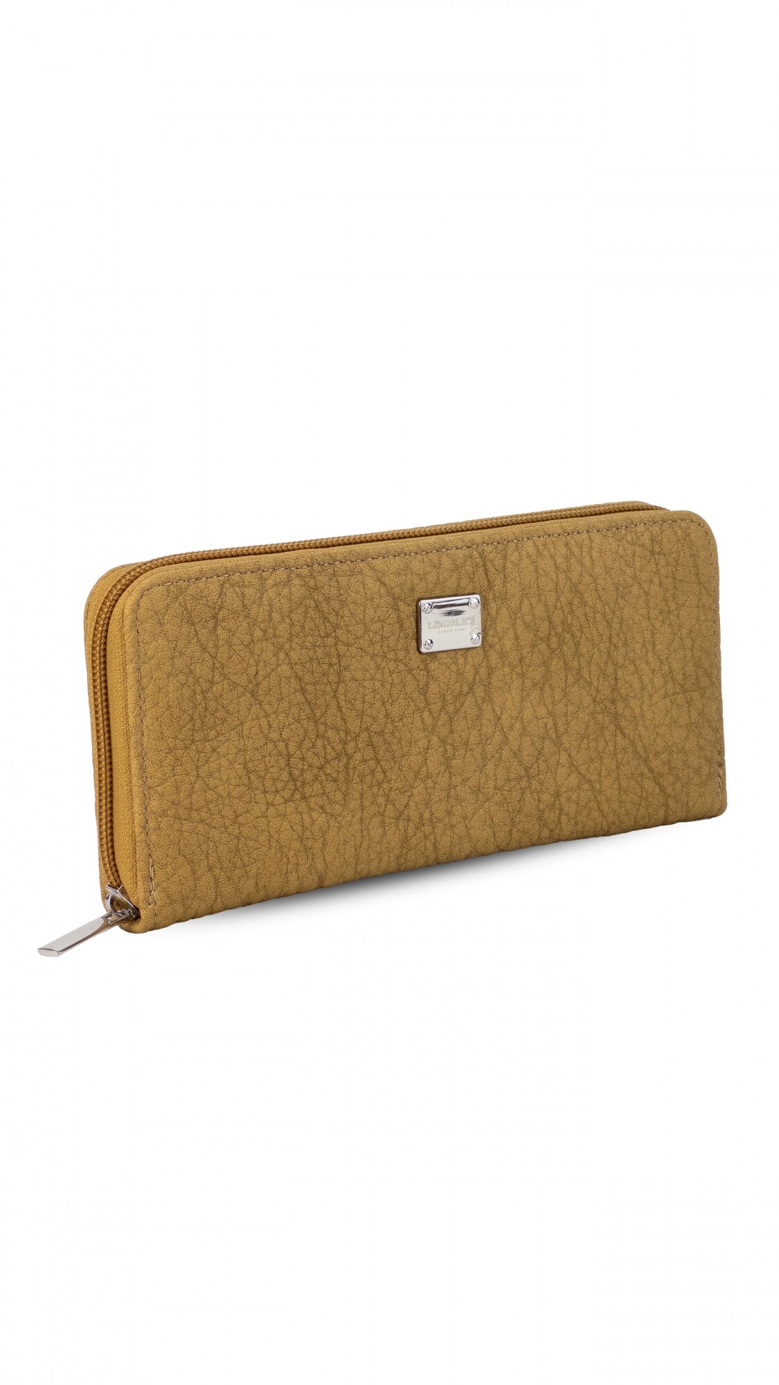 Billetera larga con cierre alrededor. Incluye varias reparticiones con tarjeteros y bolsillos a de más de un bolsillo con cierre en el interior. Monedero con cierre atrás.