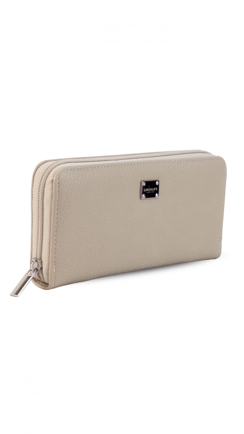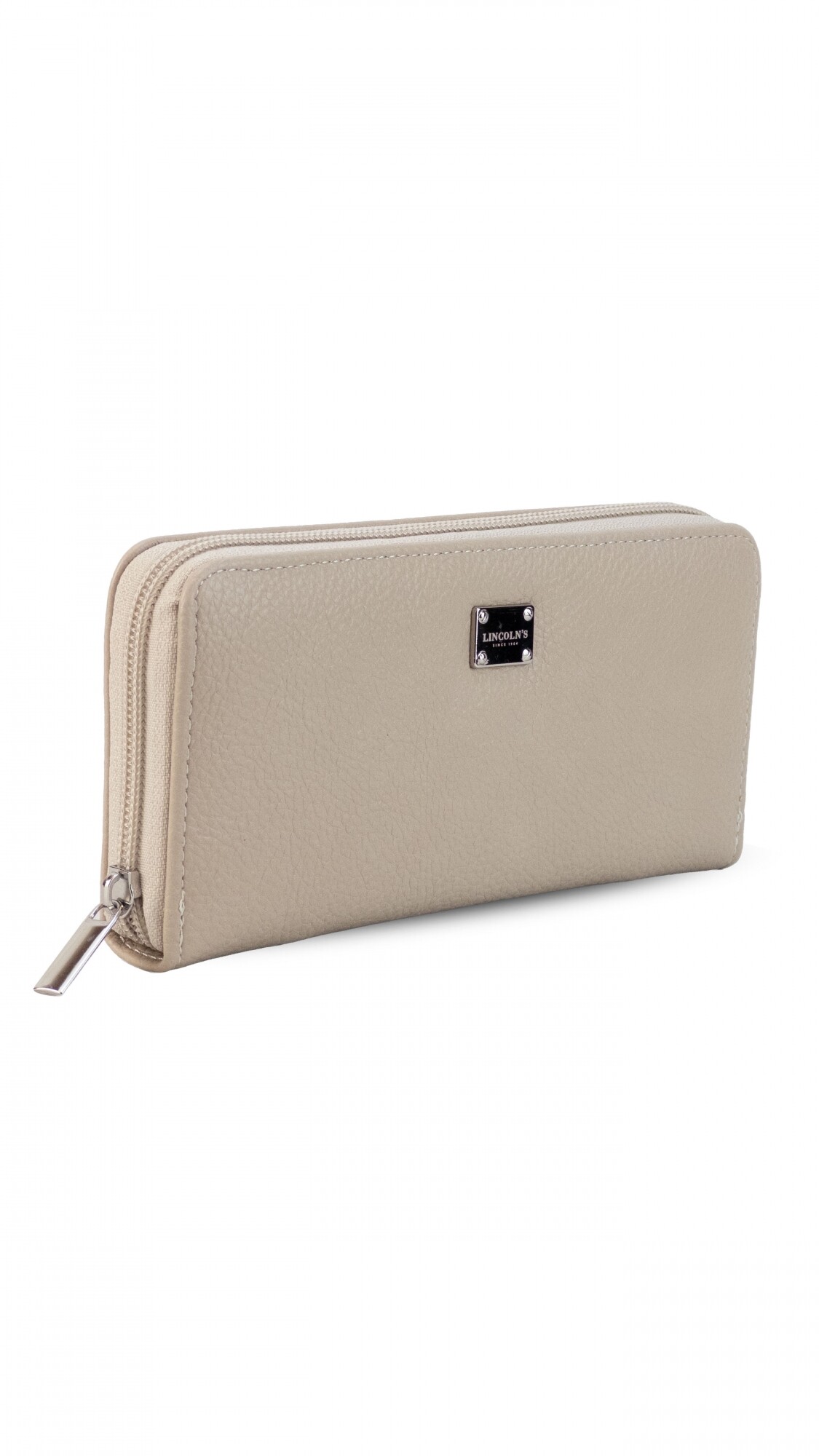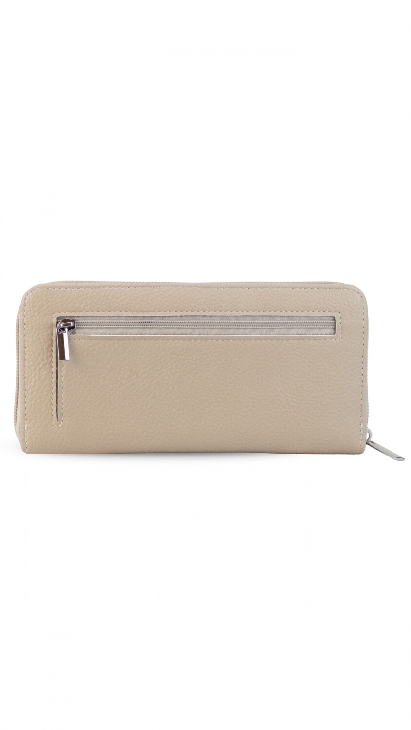 Billetera larga con cierre alrededor. Incluye varias reparticiones con tarjeteros y bolsillos a de más de un bolsillo con cierre en el interior. Monedero con cierre atrás.