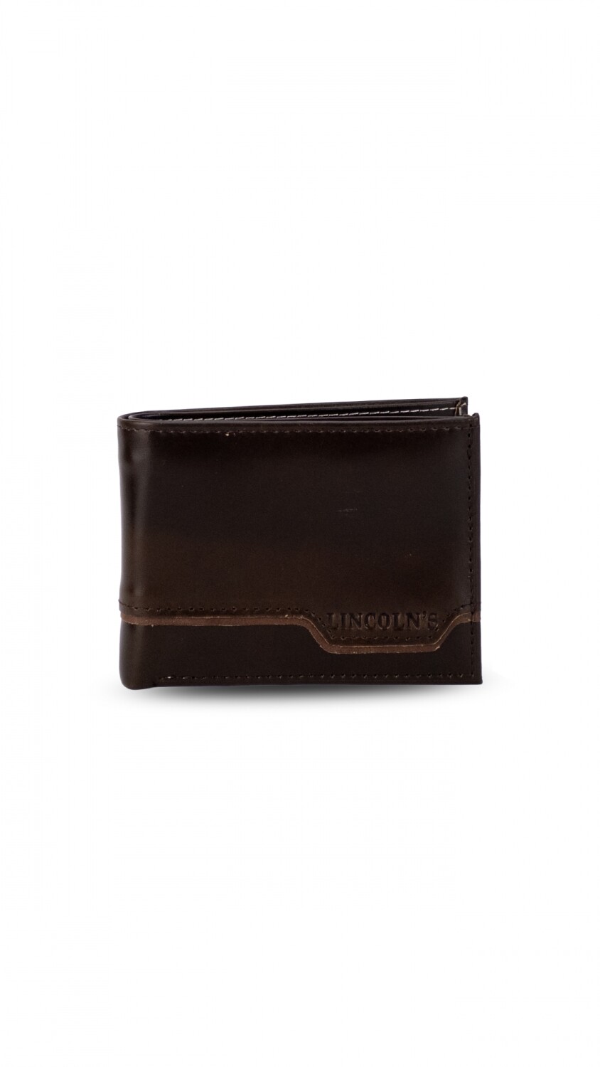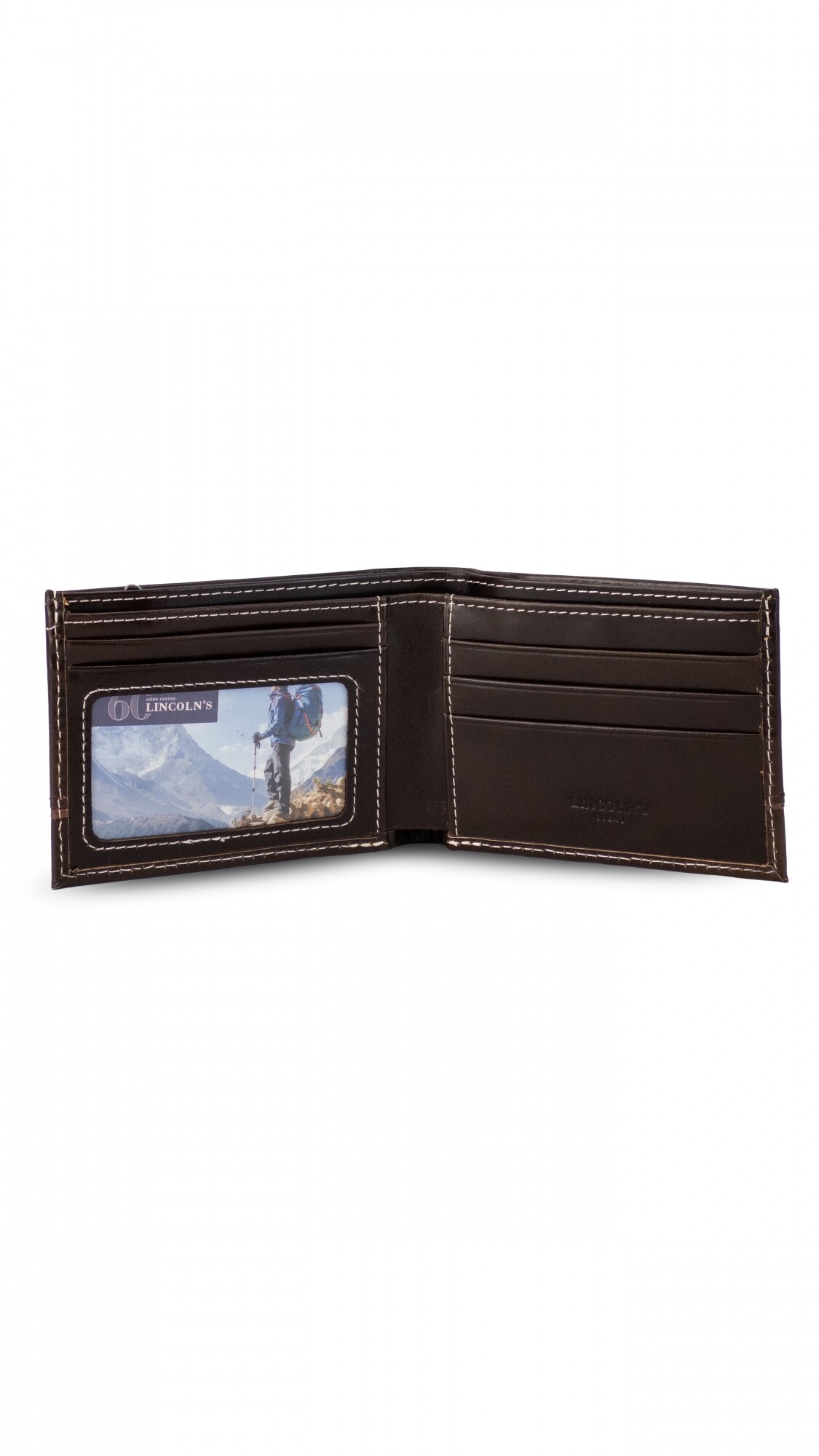 Billetera en cuero con volante interior con visor y tarjeteros. Doble repartición para billetes.