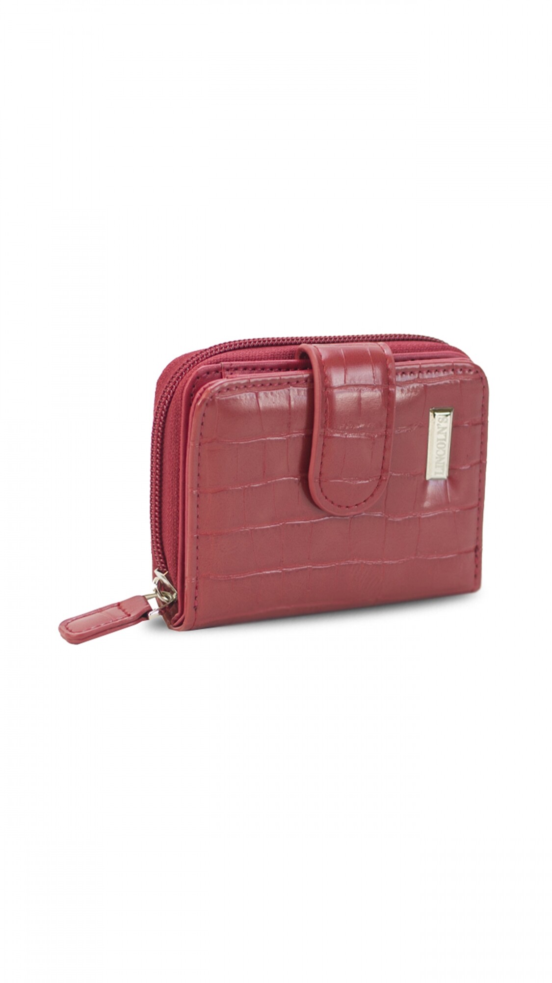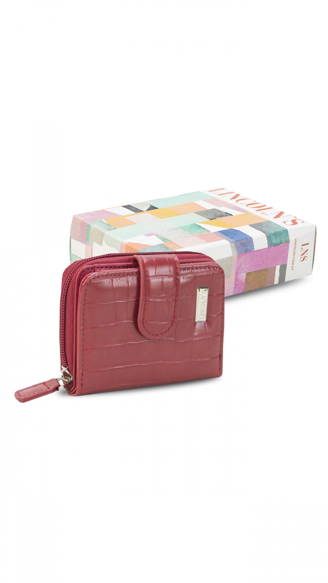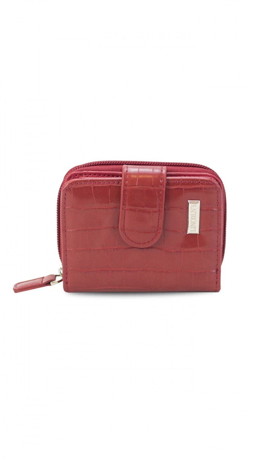 Billetera corta con presilla y broche a presión.