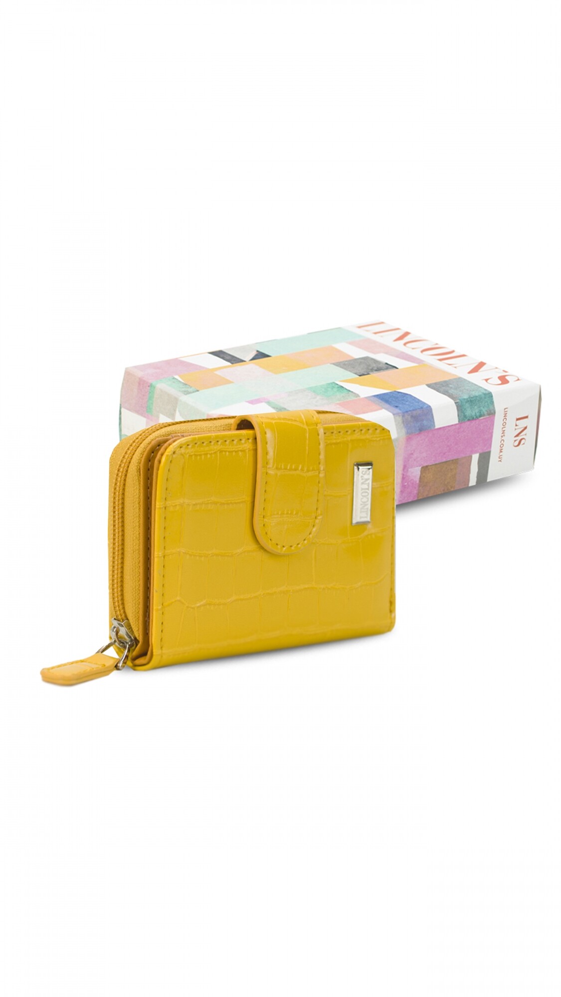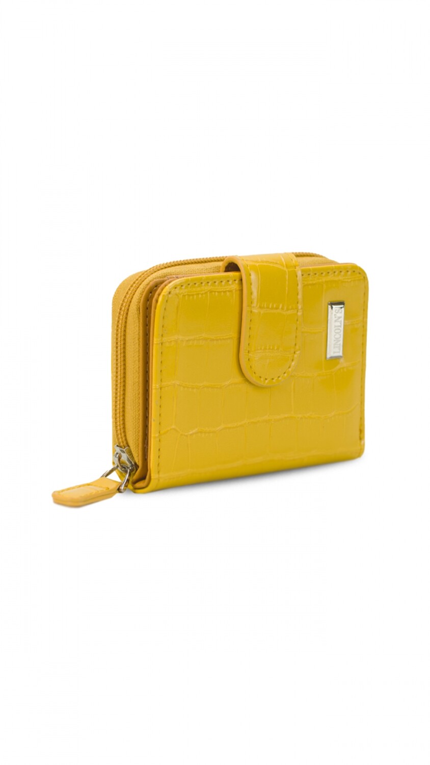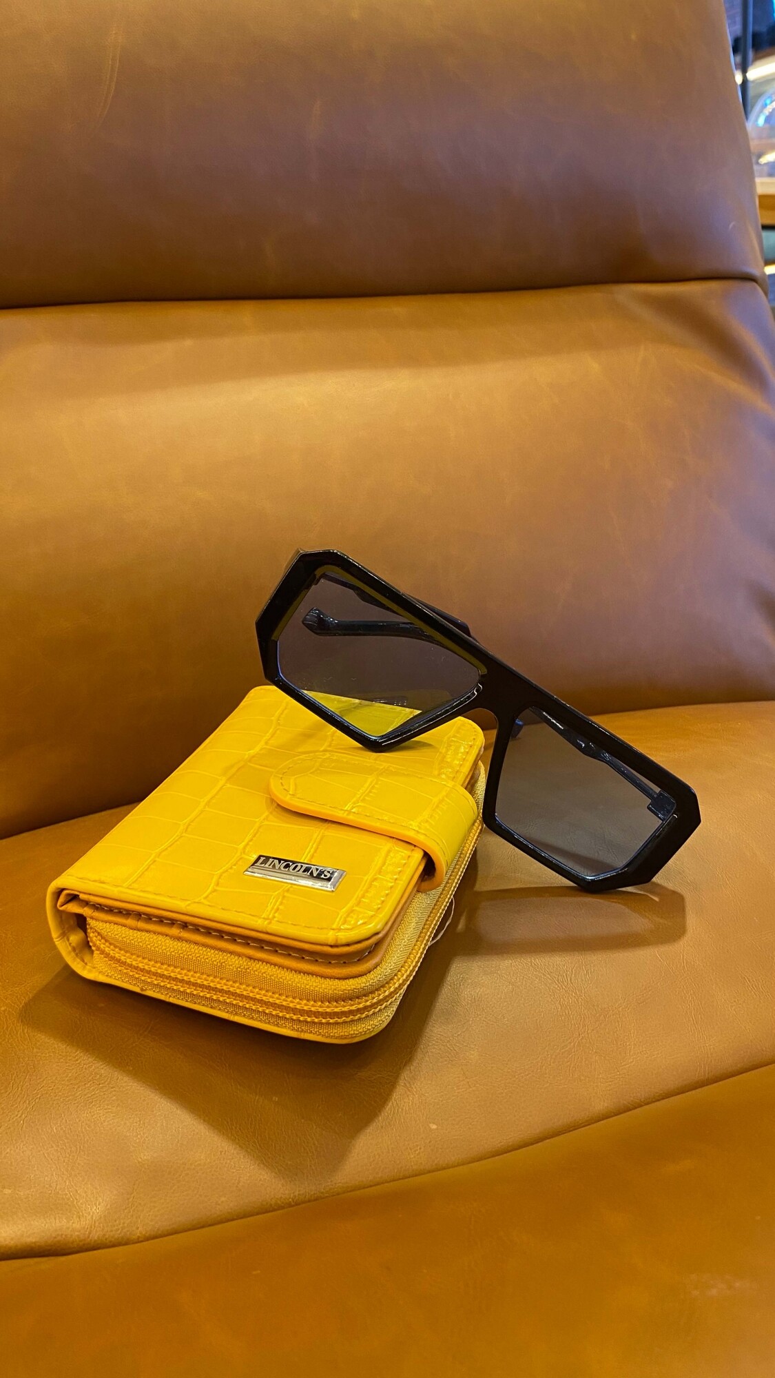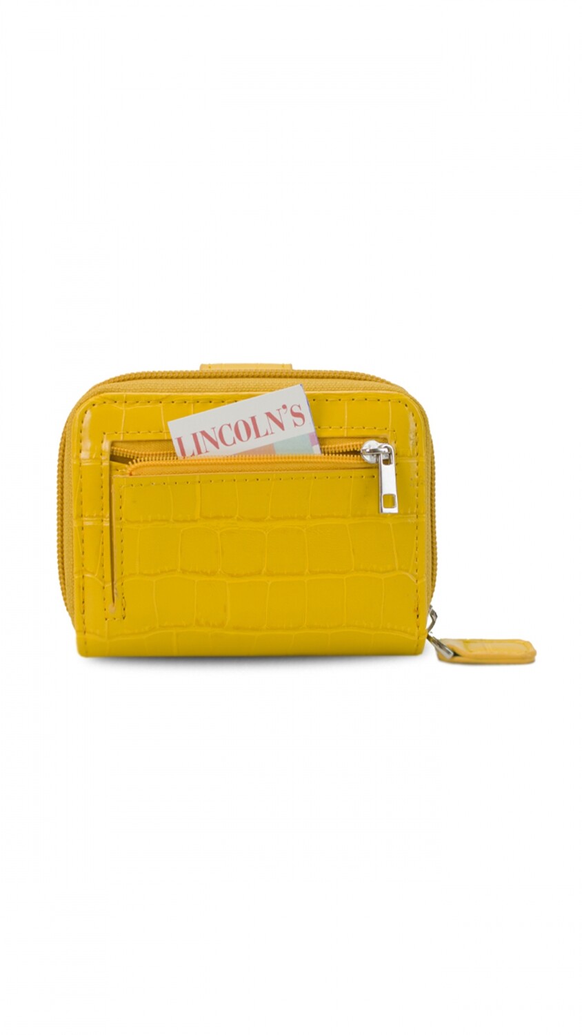 Interior con tarjeteros, visor, bolsillos y repartición para billetes.
