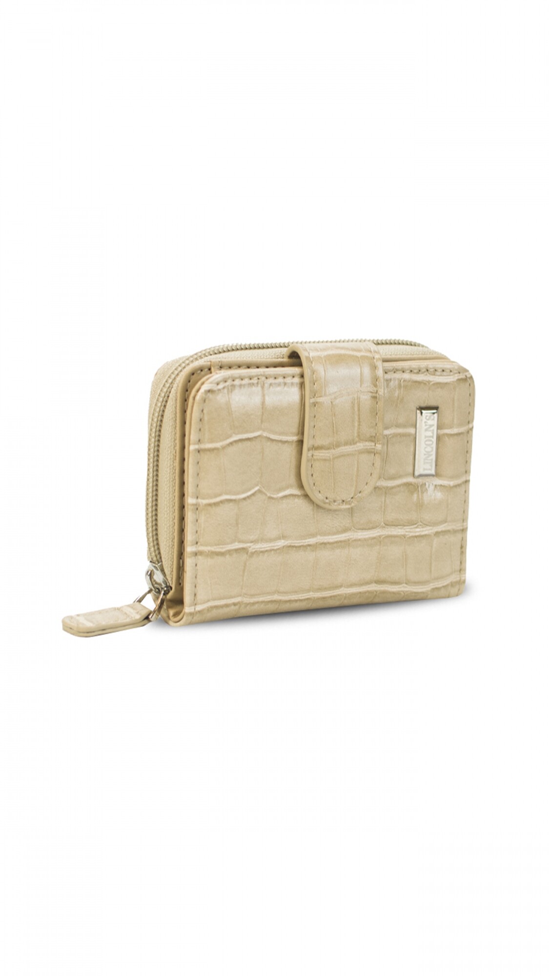 Billetera corta con presilla y broche a presión.