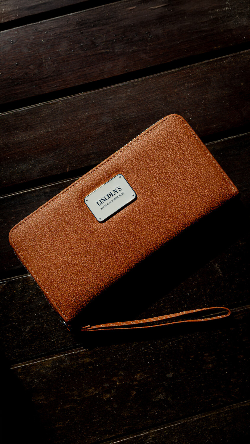 Billetera larga con cierre alrededor.