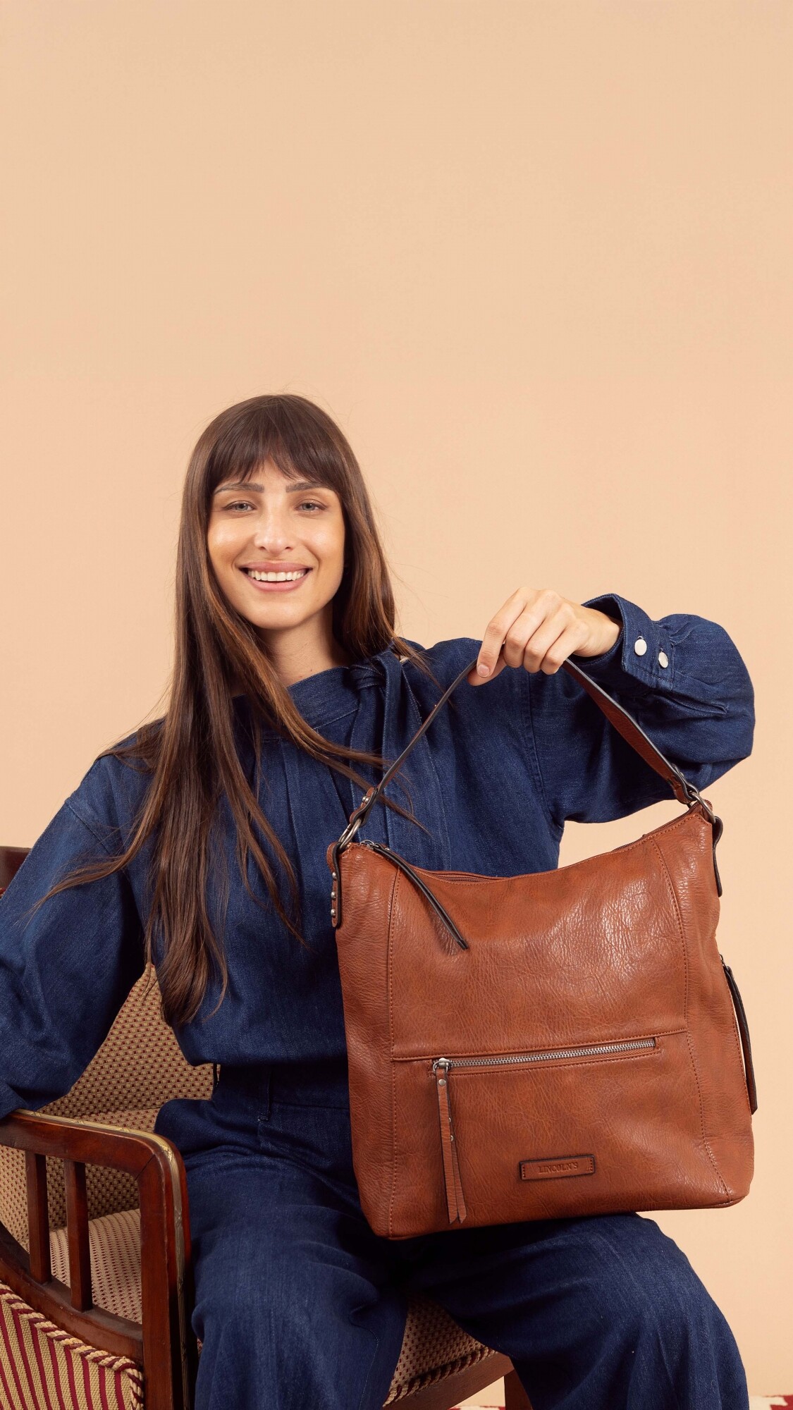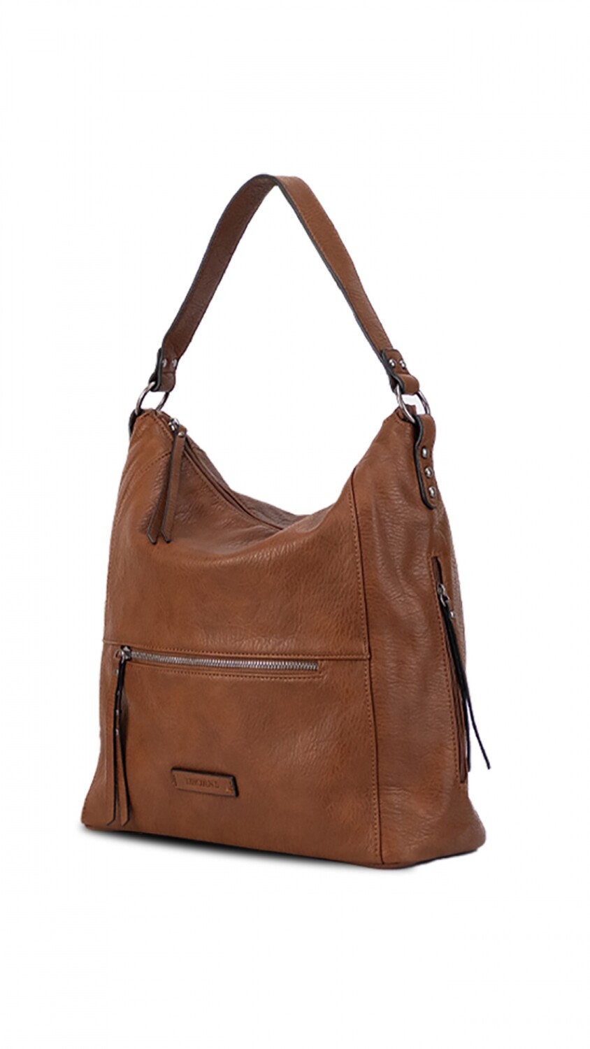 Cartera versátil con correa corta y otra larga ajustable, perfecta para diferentes estilos. Cuenta con un bolsillo metálico frontal y trasero, además de varios bolsillos internos para organización. Ideal para uso diario.