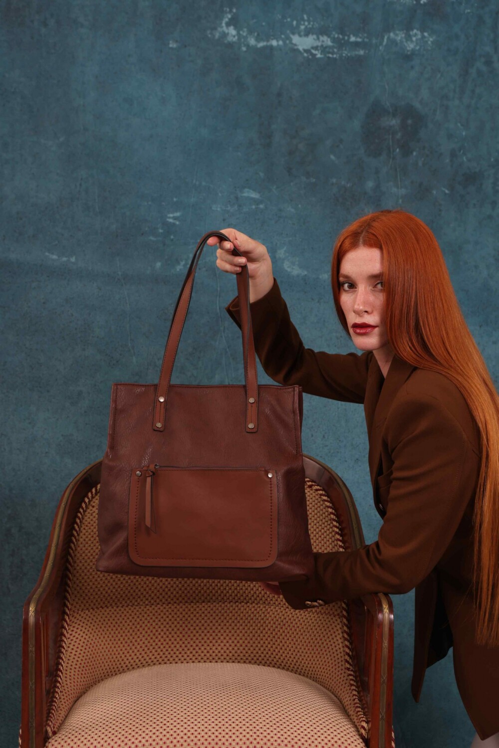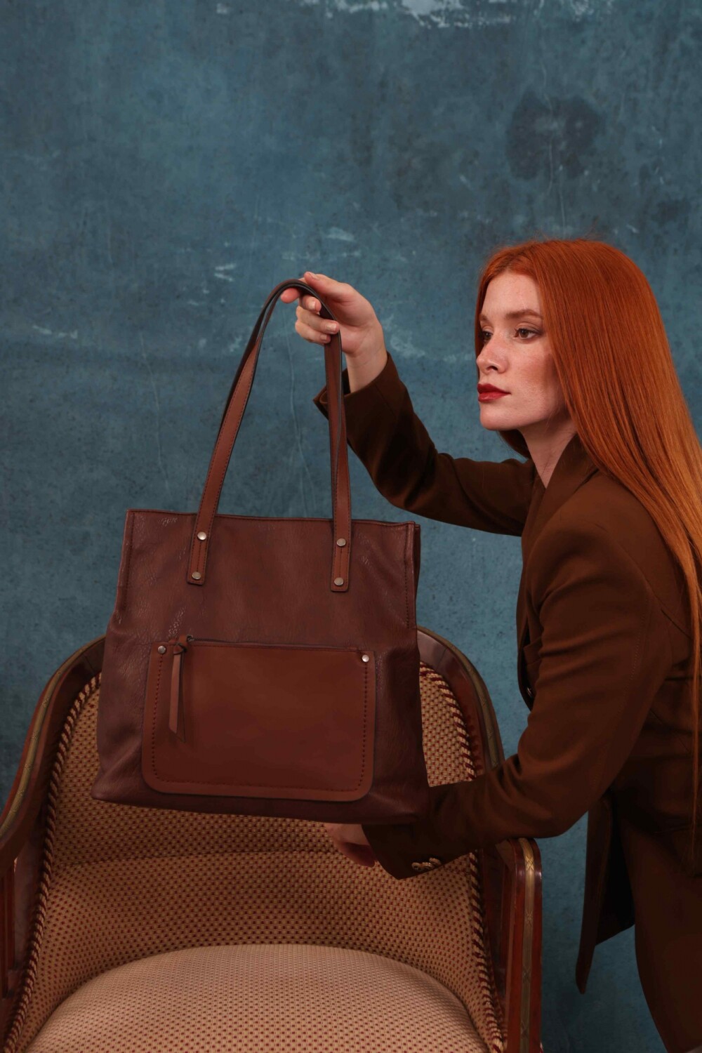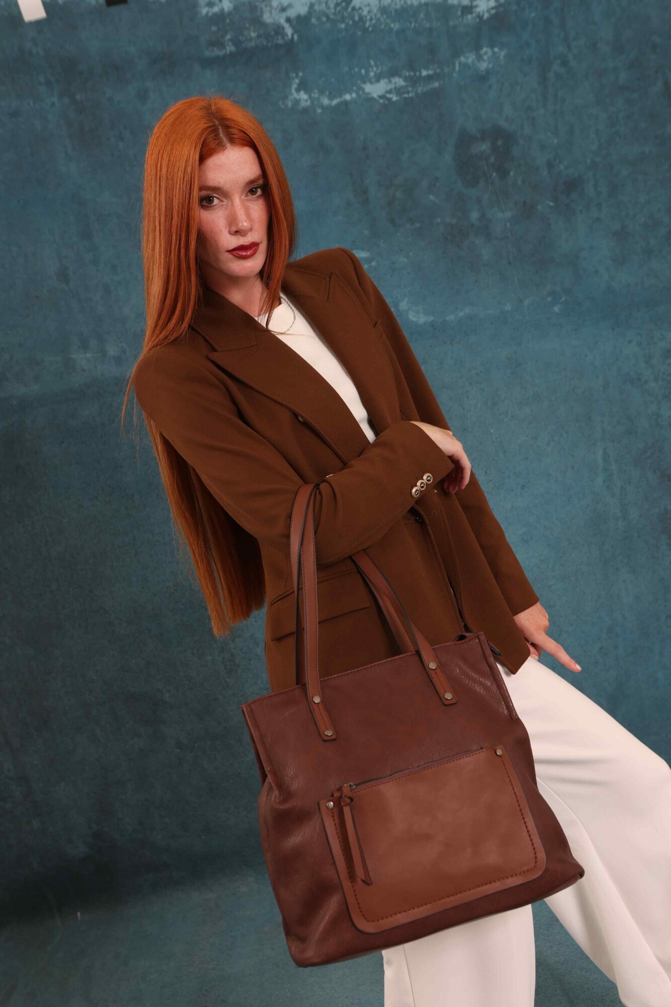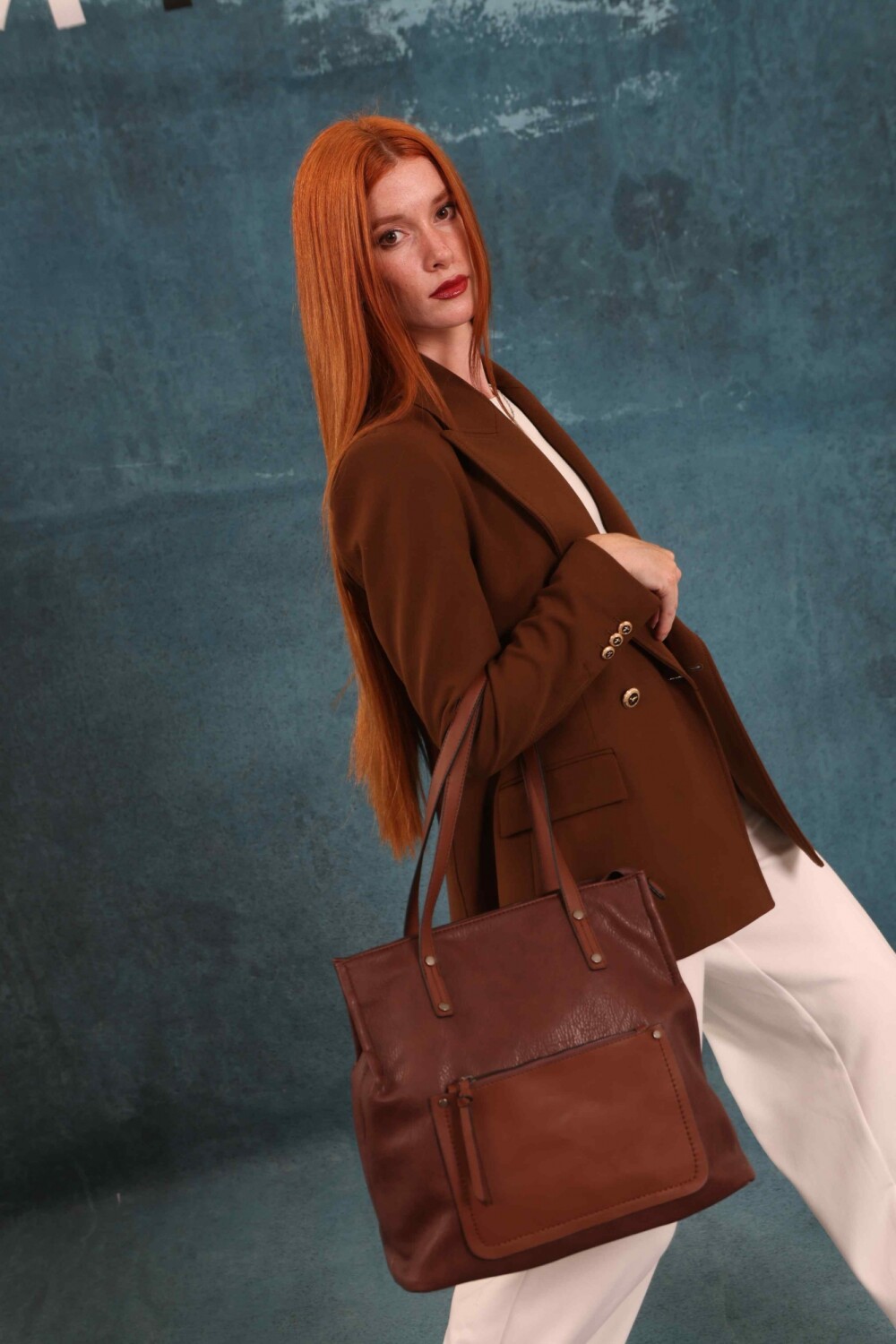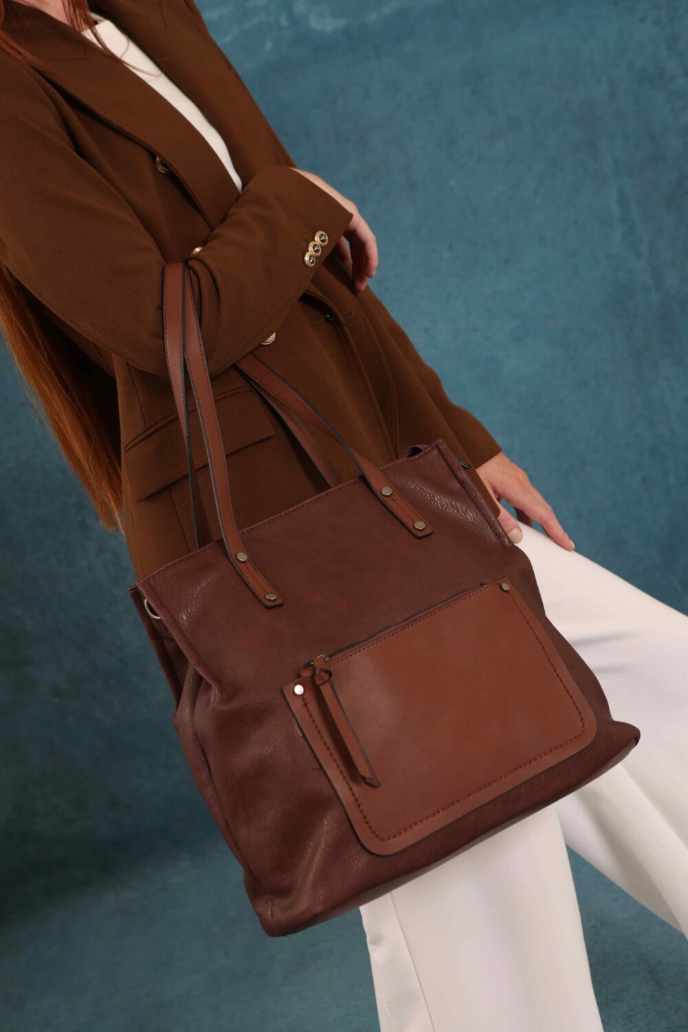 Cartera bandolera grande con dos asas cortas y una correa larga regulable. Cuenta con dos divisiones internas y un bolsillo frontal con cierre. Diseño práctico y elegante, ideal para el uso diario.