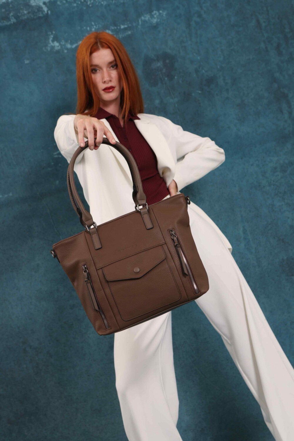 Cartera Bandolera de diseño elegante en símil cuero, con doble asa rígida, correa galón regulable y múltiples bolsillos frontales con cierre. contiene 2 divisiones, Practica, espaciosa y versátil para uso diario.