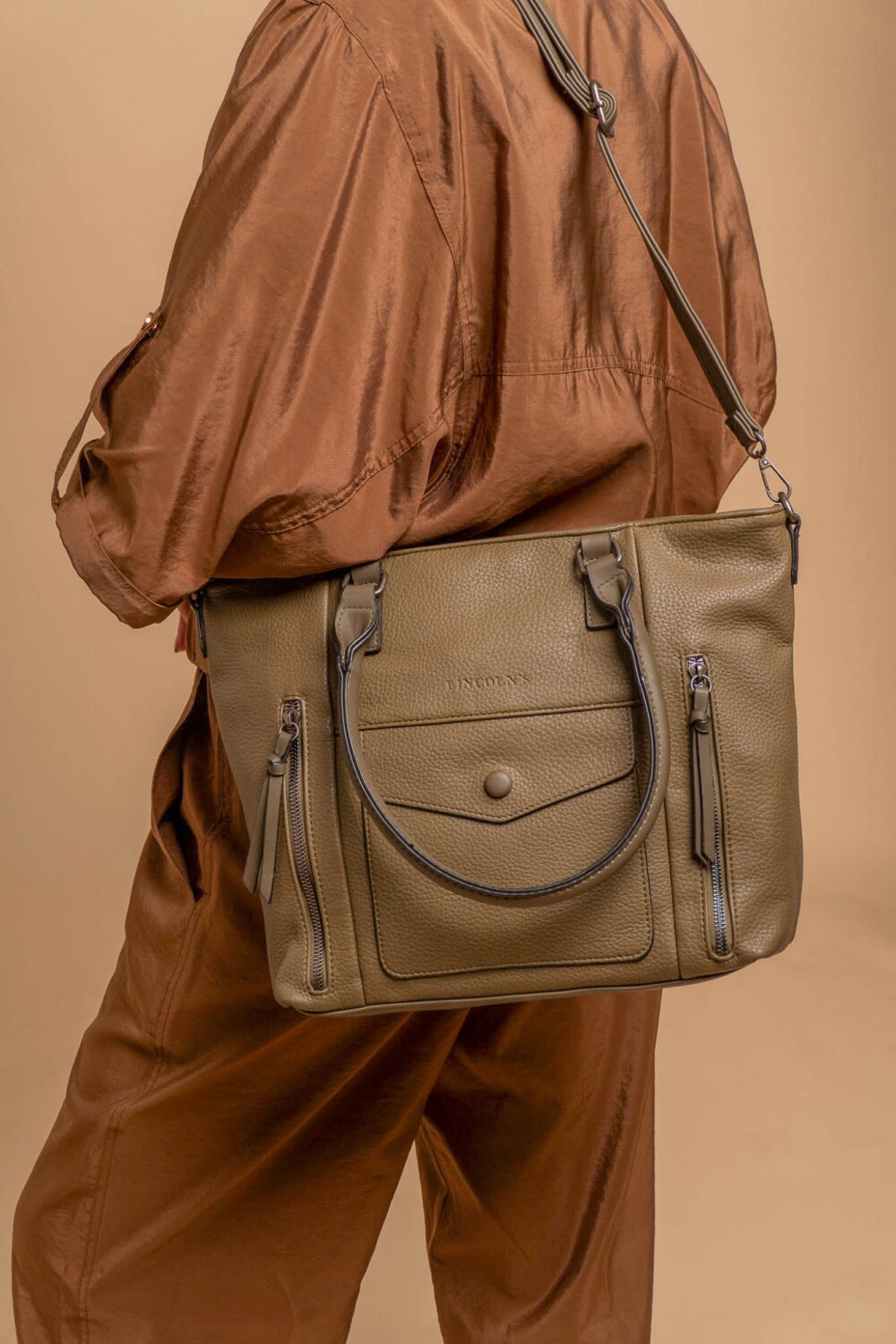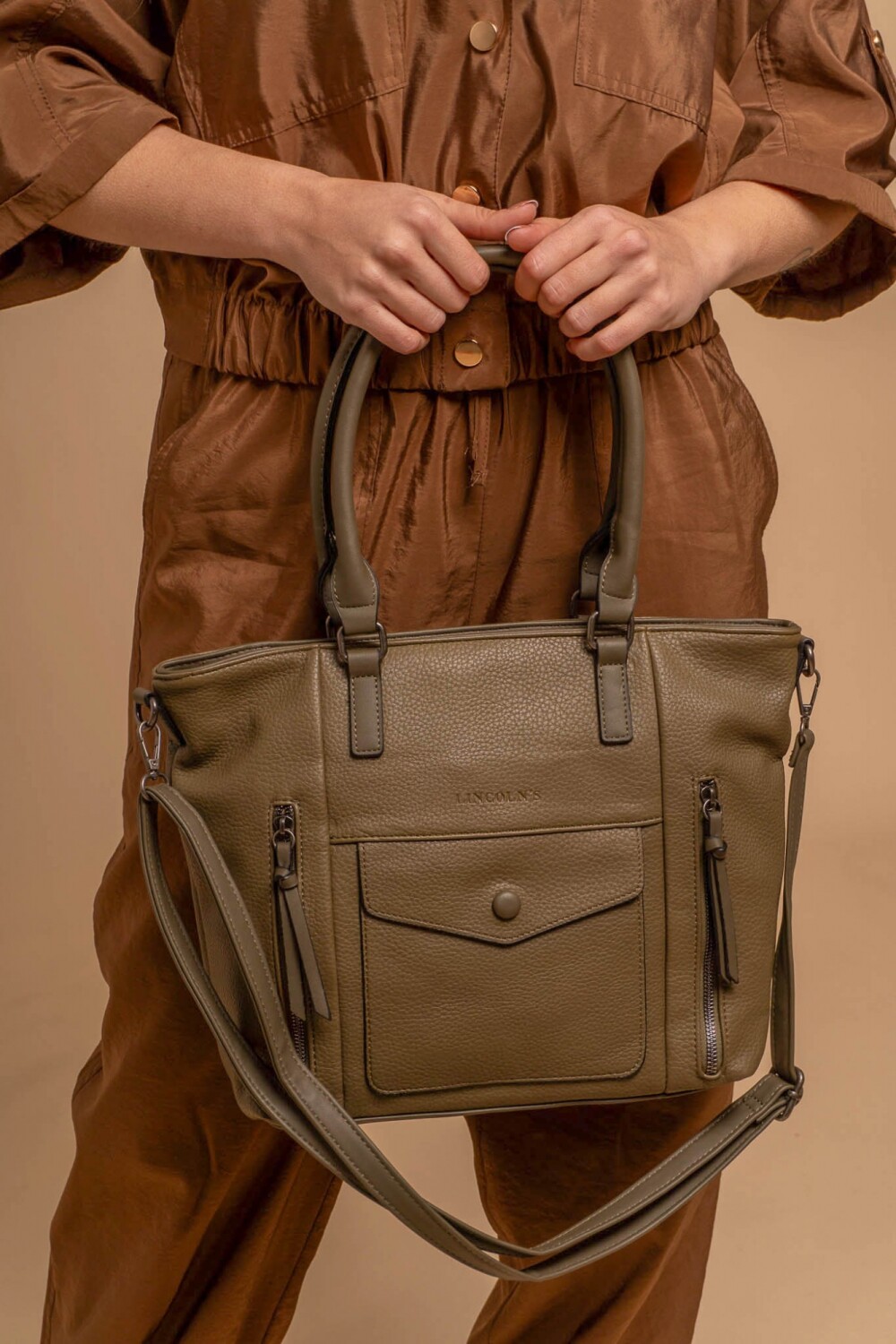 Cartera Bandolera de diseño elegante en símil cuero, con doble asa rígida, correa galón regulable y múltiples bolsillos frontales con cierre. contiene 2 divisiones, Practica, espaciosa y versátil para uso diario.