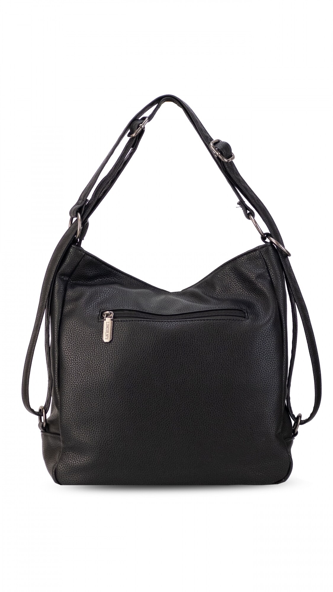 Cartera mochila de símil cuero suave, practica y moderna. Cuenta con múltiples bolsillos con cierre, división al medio y correa ajustable de doble manija para llevar al hombro y mochila. Ideal para el uso diario con estilo y comodidad
