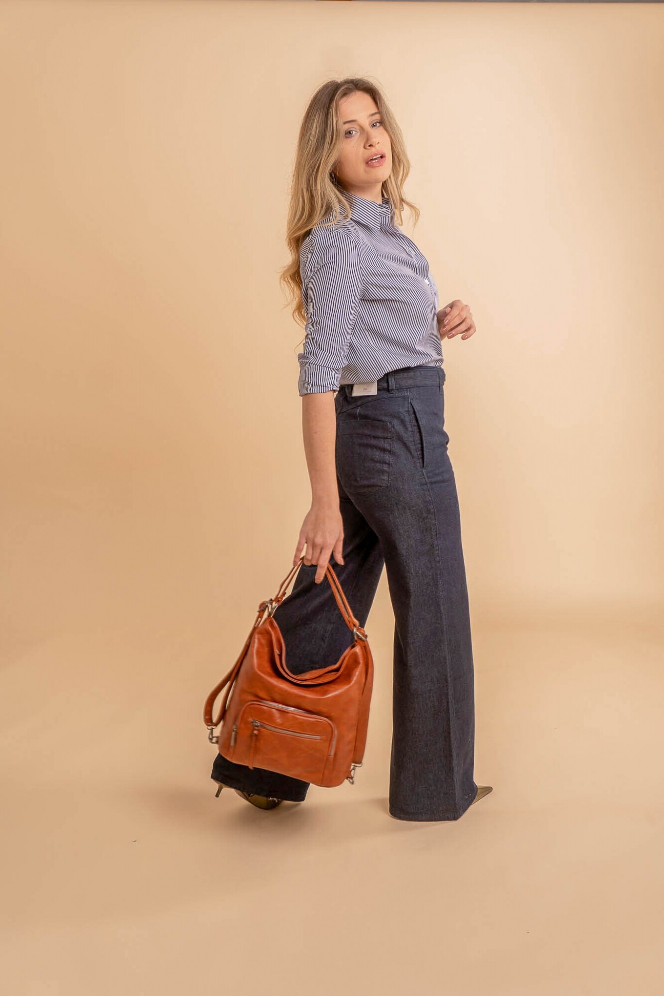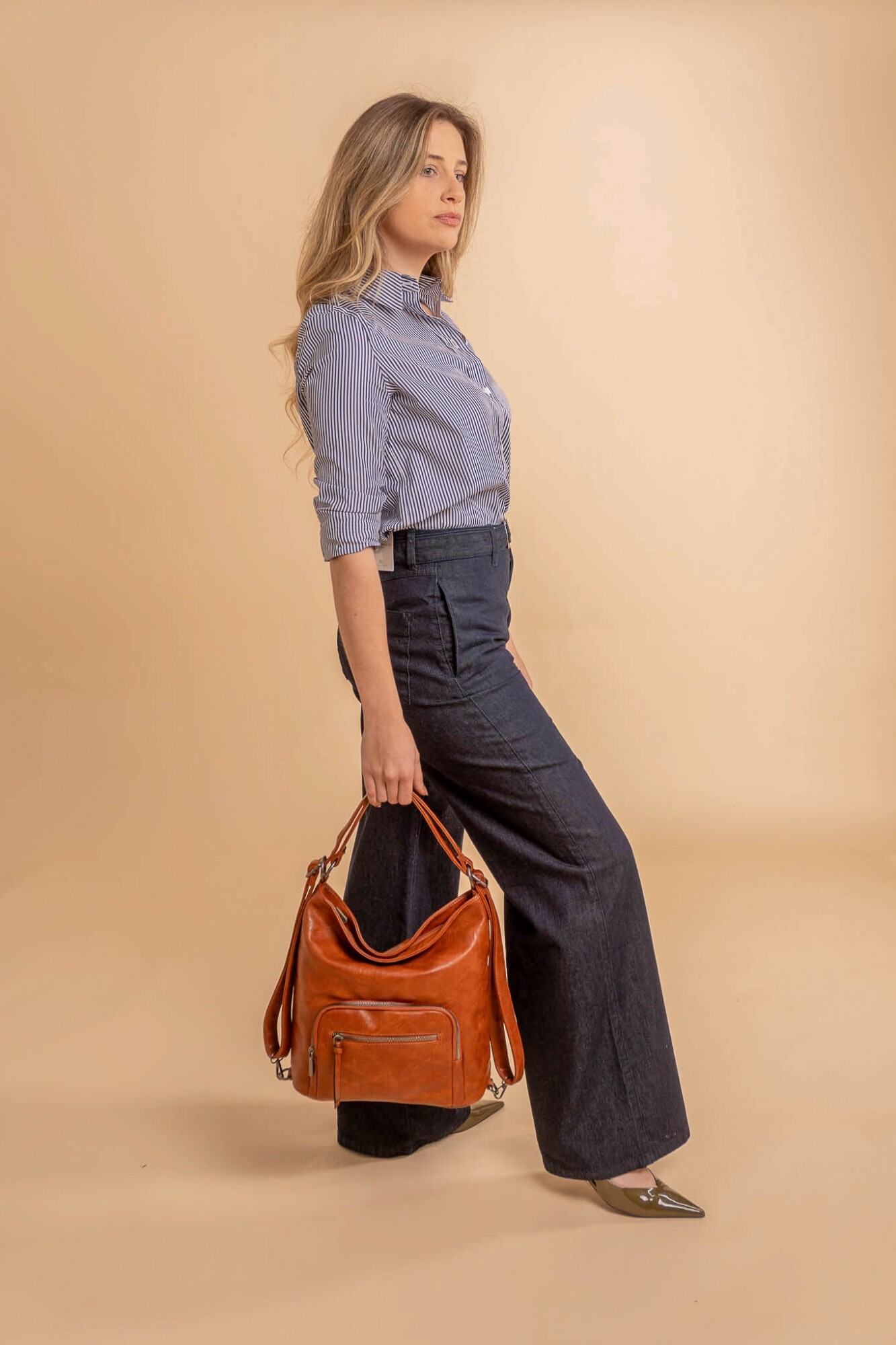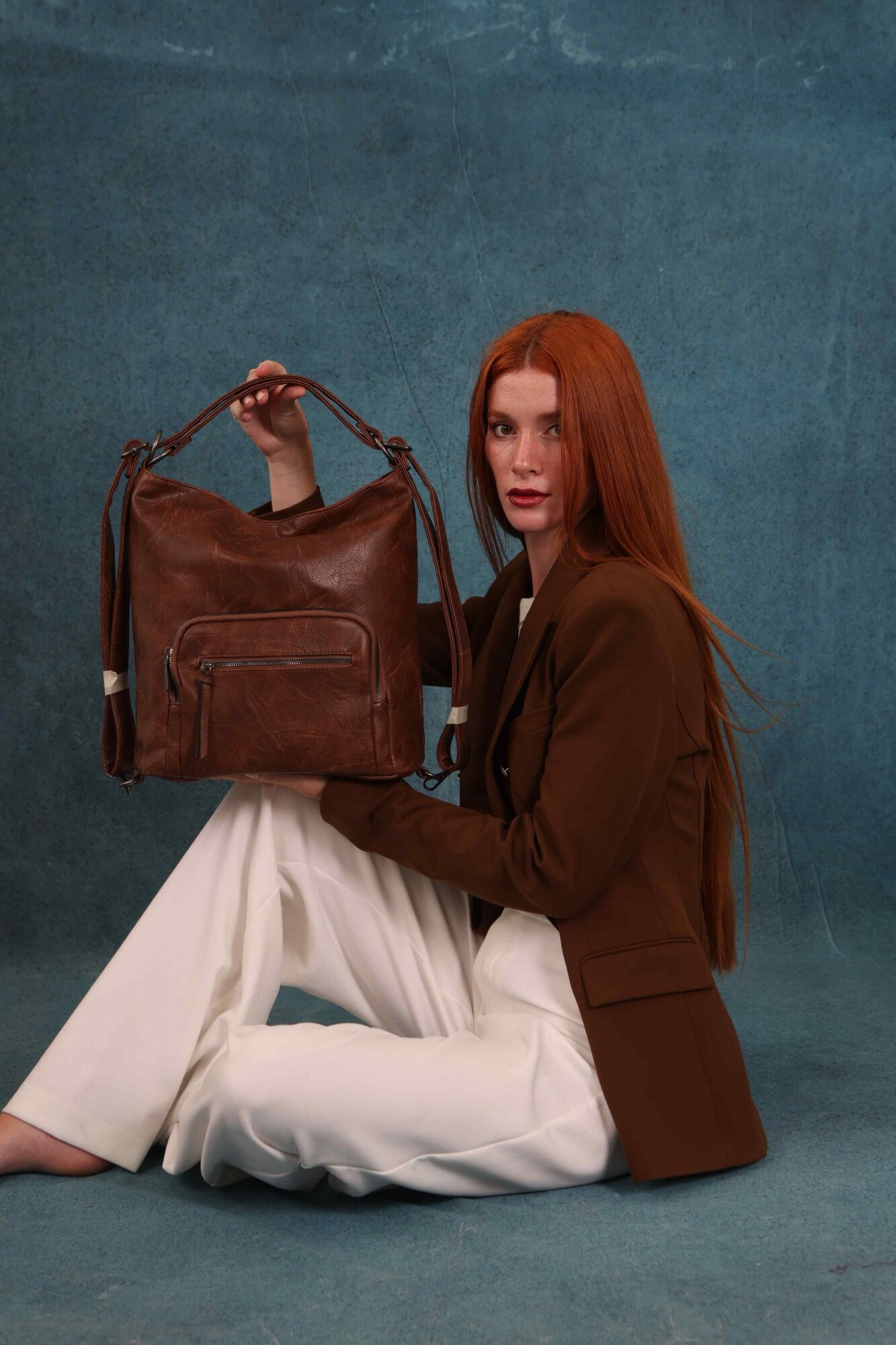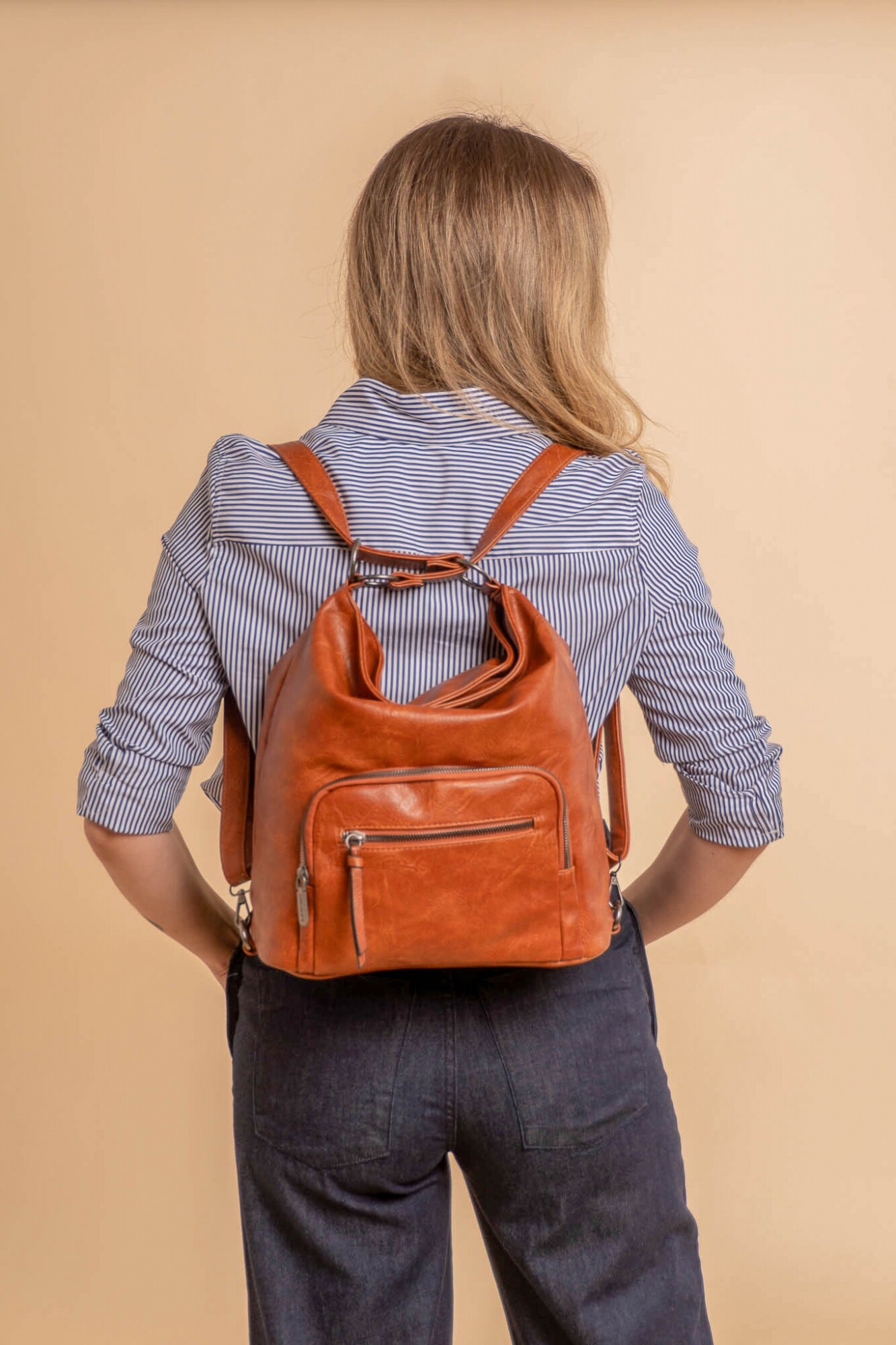 Cartera mochila símil cuero, practica y versátil. Con compartimiento principal amplio y bolsillos frontales con cierre para mayor organización. Correas ajustables y asa superior para llevar al hombro o como una mochila . ideal para uso diario.