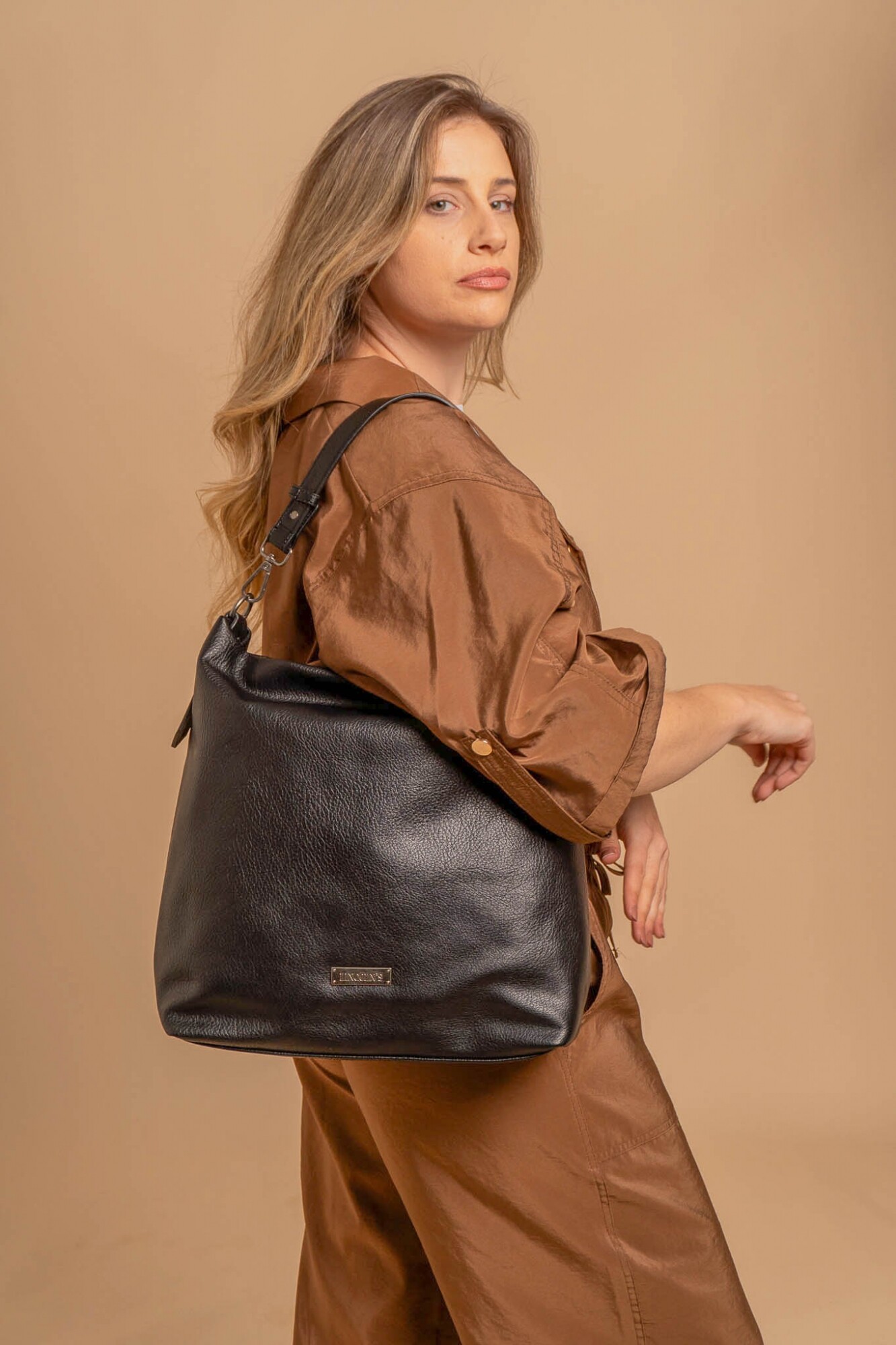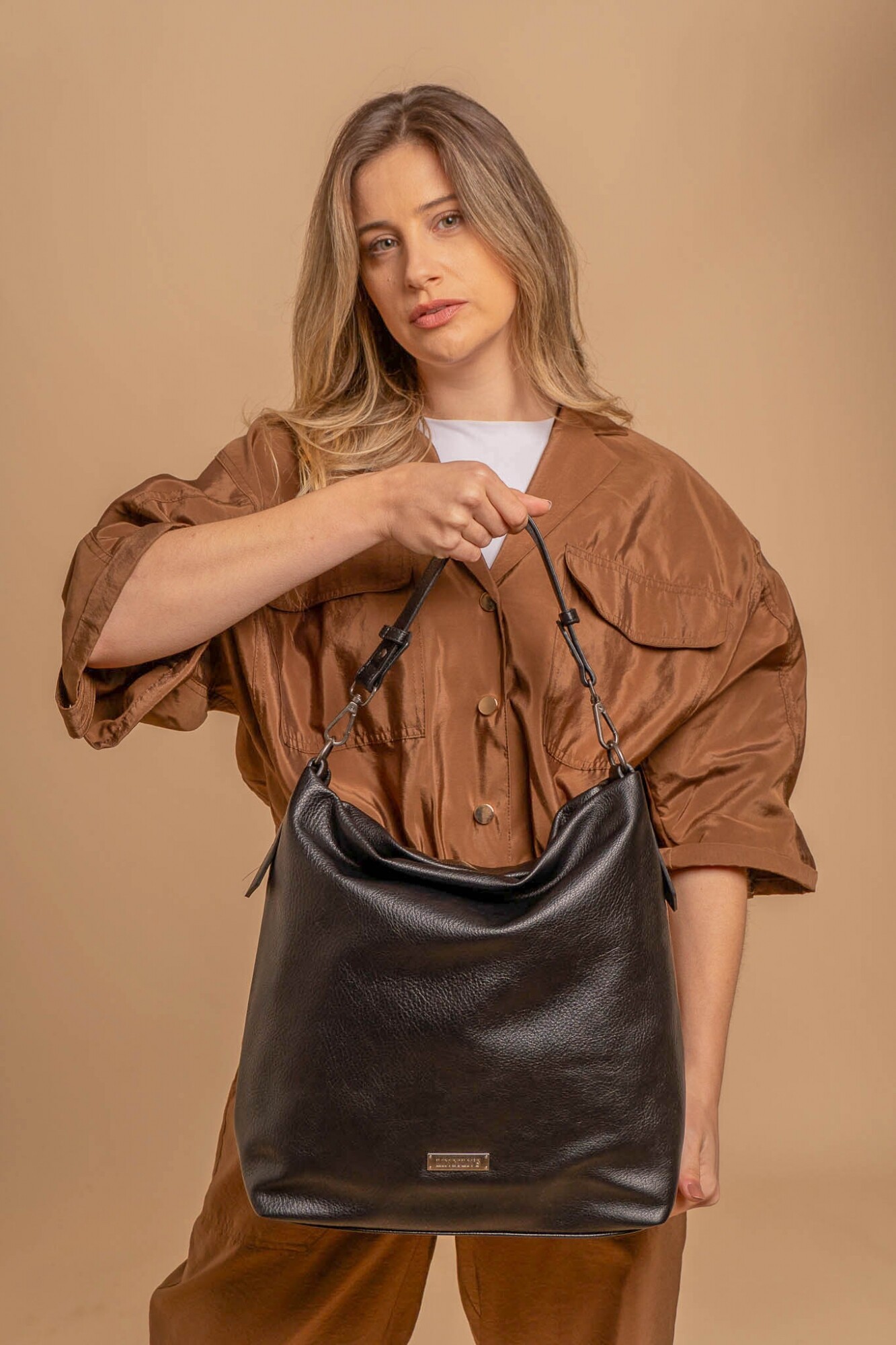 Cartera bandolera amplia con dos divisiones internas, asa corta fija y correa larga regulable. Confeccionada en símil cuero de alta calidad. Diseño versátil y cómodo, ideal para el uso diario.
