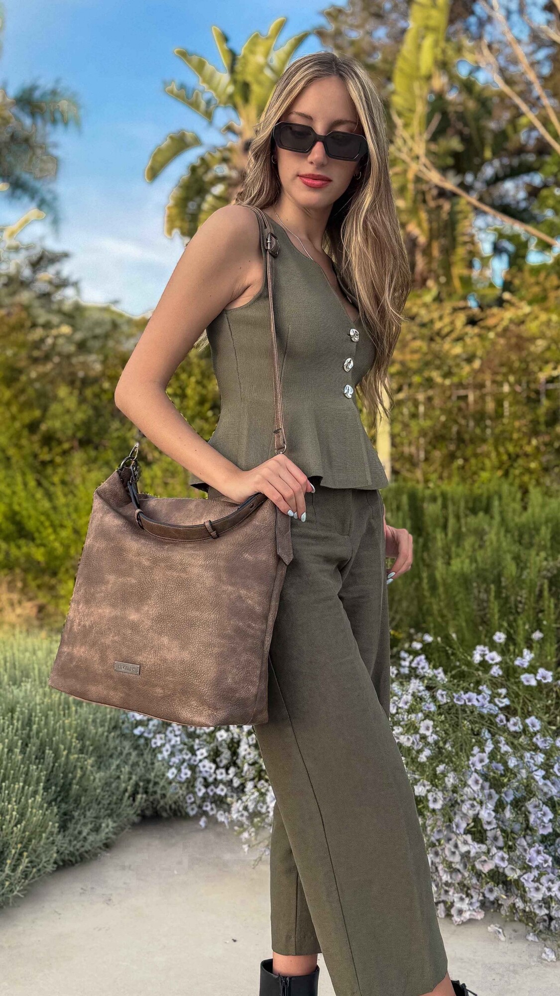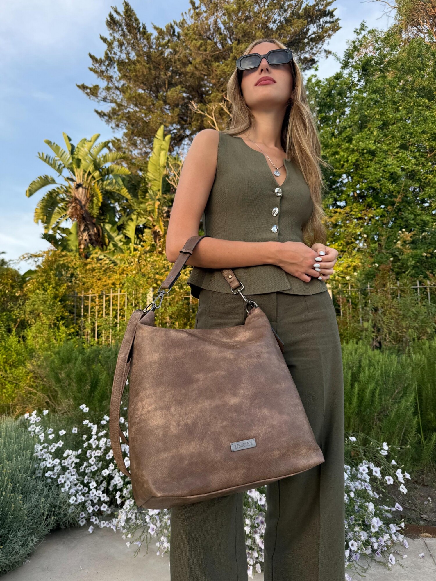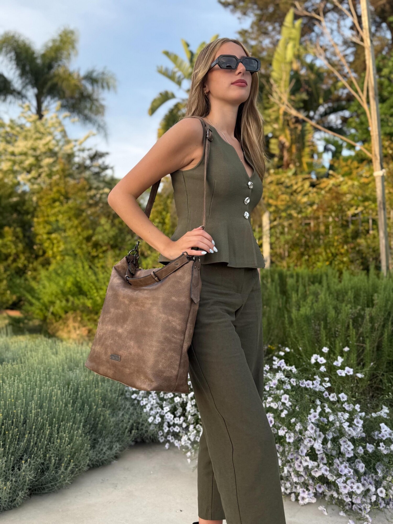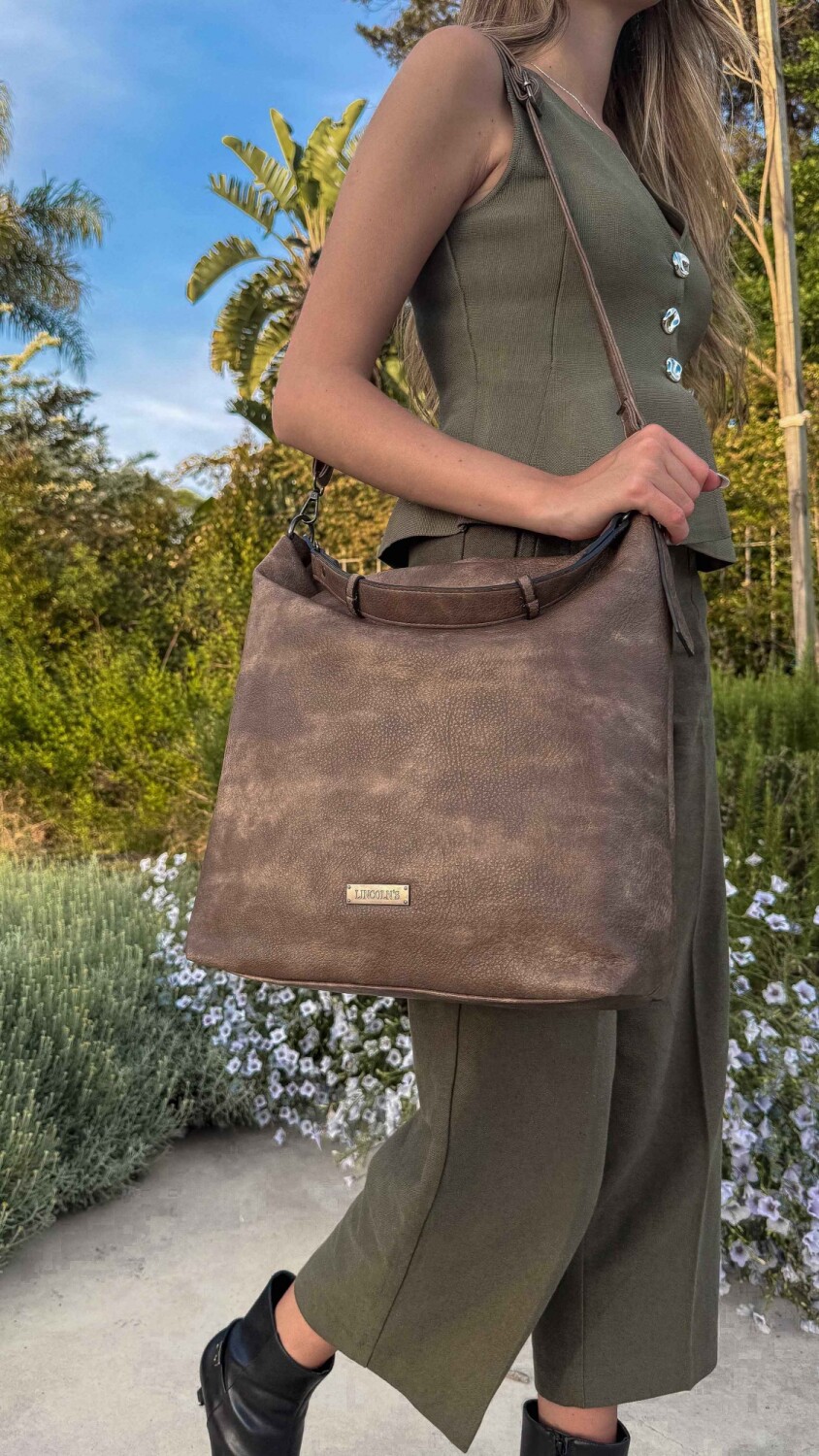 Cartera bandolera amplia con dos divisiones internas, asa corta fija y correa larga regulable. Confeccionada en símil cuero de alta calidad. Diseño versátil y cómodo, ideal para el uso diario.