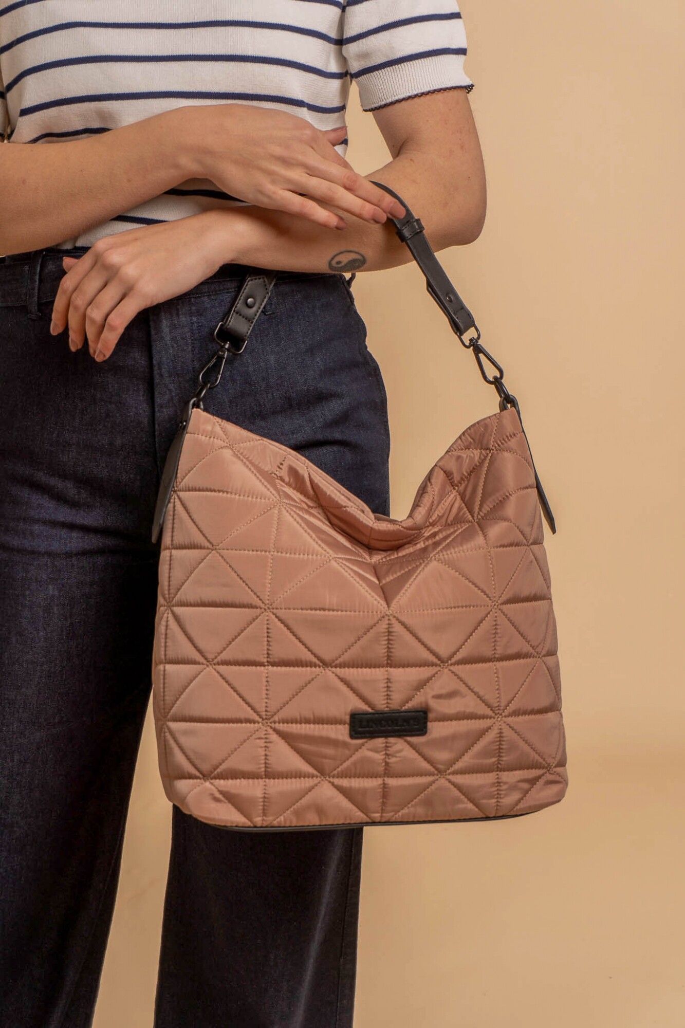 Cartera capitoneada moderna y elegante, con diseño geométrico y asa resistente. Amplia y cómoda, ideal para el uso diario. Combina estilo y funcionalidad en un solo accesorio.