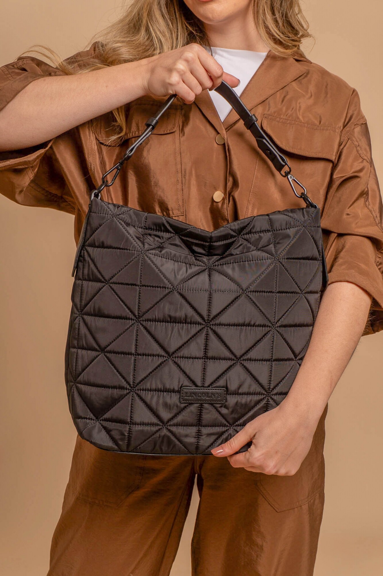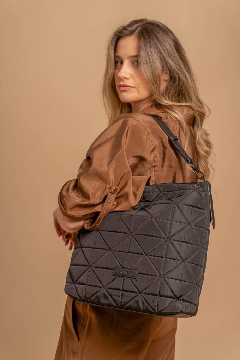 Cartera capitoneada moderna y elegante, con diseño geométrico y asa resistente. Amplia y cómoda, ideal para el uso diario. Combina estilo y funcionalidad en un solo accesorio.