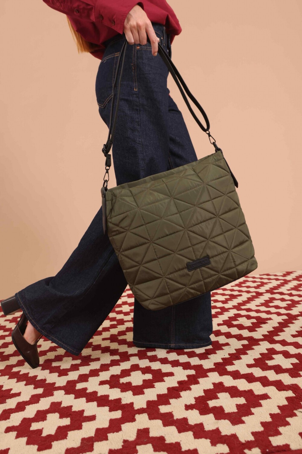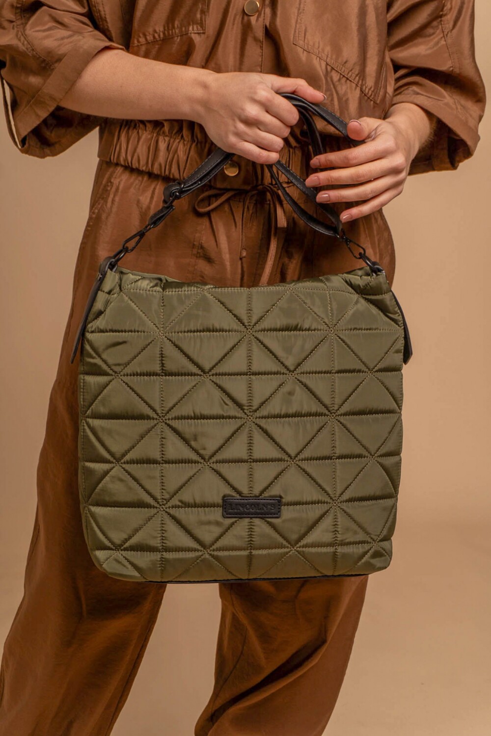 Cartera capitoneada moderna y elegante, con diseño geométrico y asa resistente. Amplia y cómoda, ideal para el uso diario. Combina estilo y funcionalidad en un solo accesorio.