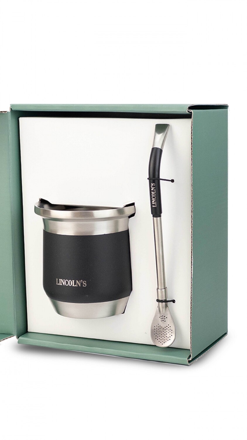 kit Matero con Mate y bombilla al tono de acero inoxidable. Capacidad 300ml. Diseño moderno y resistente.