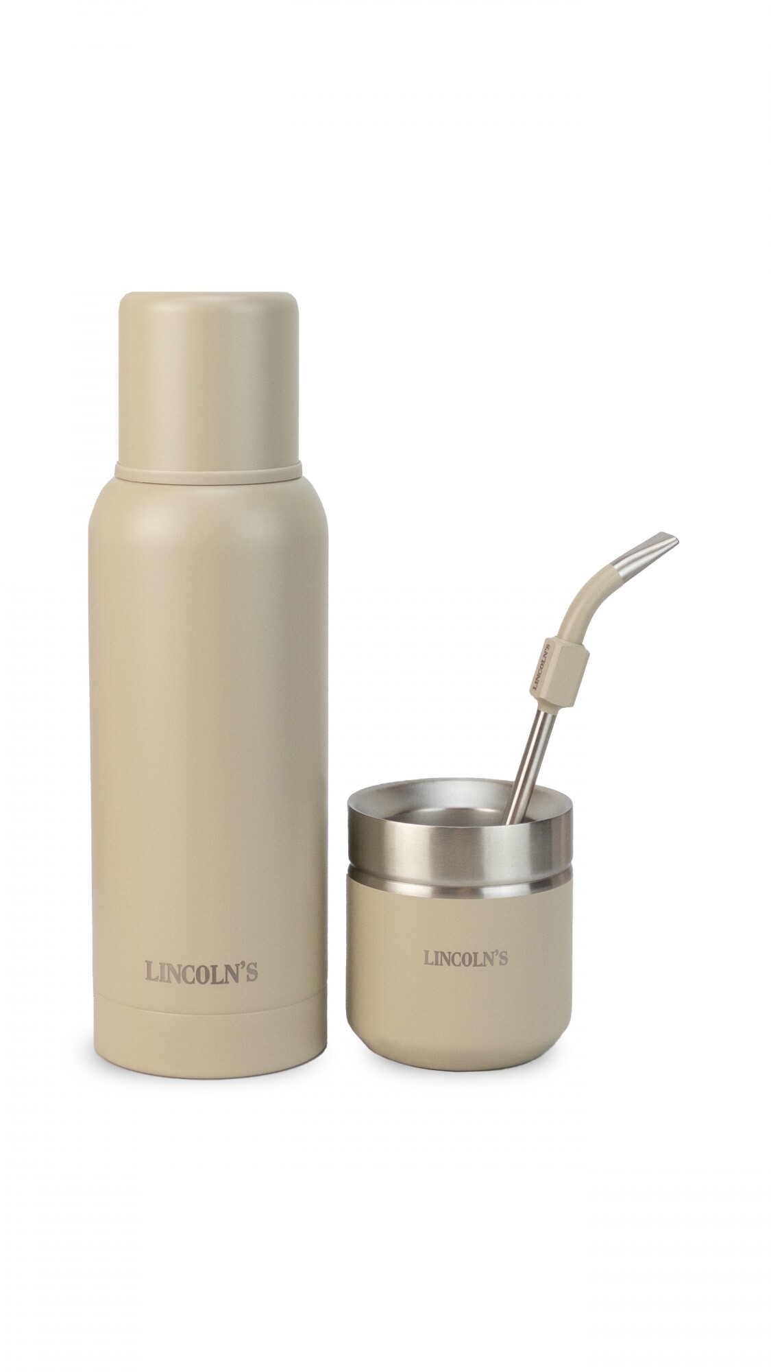 Kit de termo (750 ml), mate y bombilla en acero inoxidable con tapa a rosca. Mantiene la temperatura por horas gracias a su doble pared aislante. Diseño moderno, resistente y práctico para disfrutar del mate en cualquier lugar.