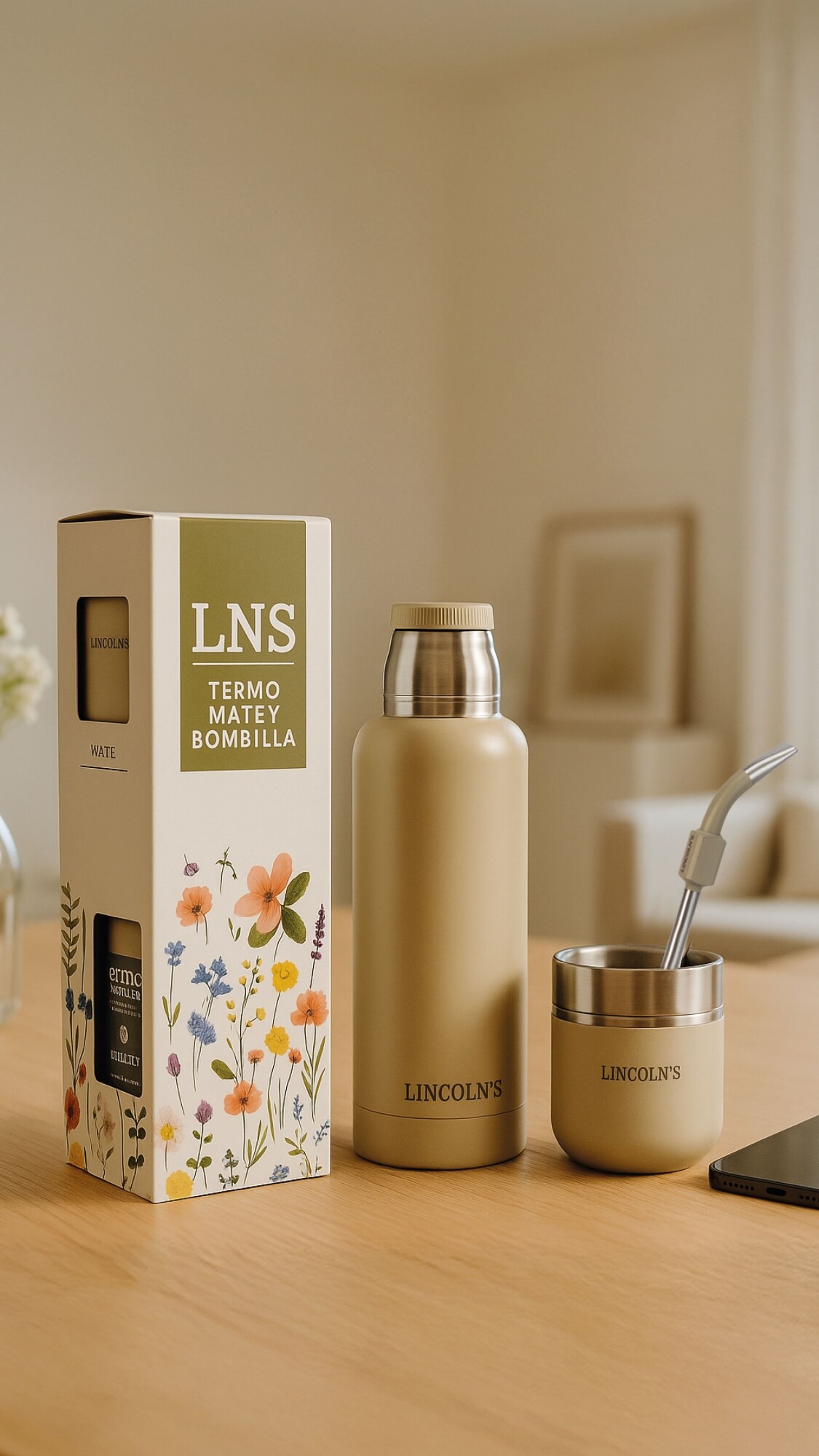 Kit de termo (750 ml), mate y bombilla en acero inoxidable con tapa a rosca. Mantiene la temperatura por horas gracias a su doble pared aislante. Diseño moderno, resistente y práctico para disfrutar del mate en cualquier lugar.