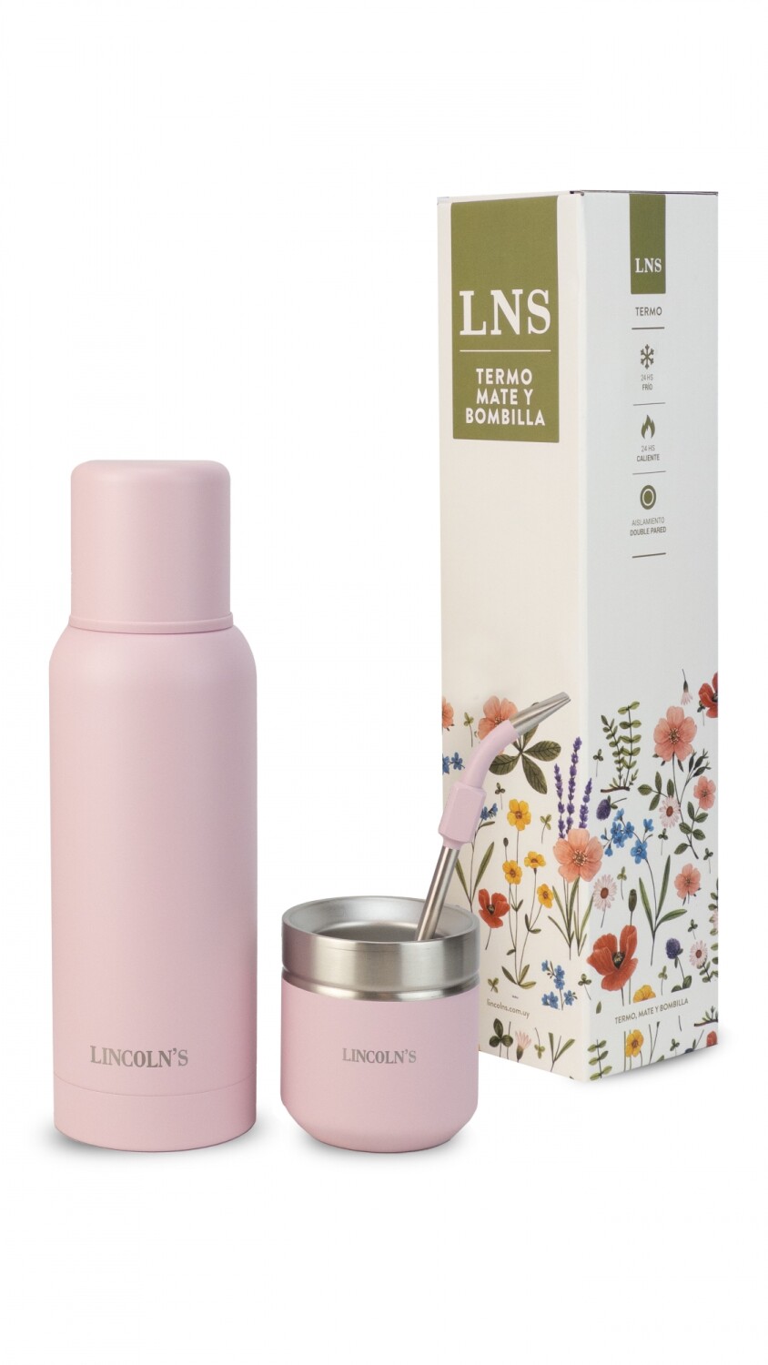 Kit de termo (750 ml), mate y bombilla en acero inoxidable con tapa a rosca. Mantiene la temperatura por horas gracias a su doble pared aislante. Diseño moderno, resistente y práctico para disfrutar del mate en cualquier lugar.
