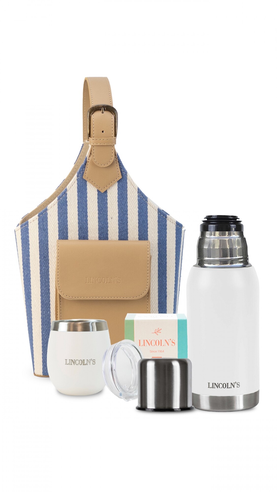 - Mate de acero inoxidable con doble pared al vacío y tapa.