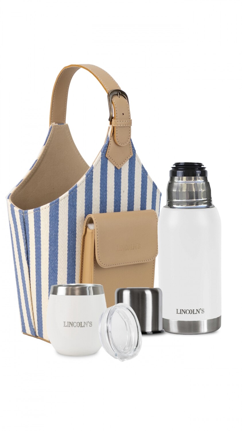 - Posa termo en símil combinado con bolsillo al frente y asa.