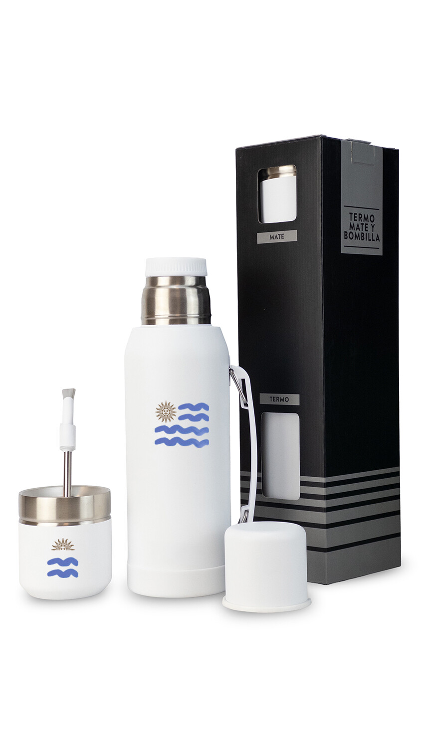 - Mate de acero inoxidable con doble pared al vacío y tapa.