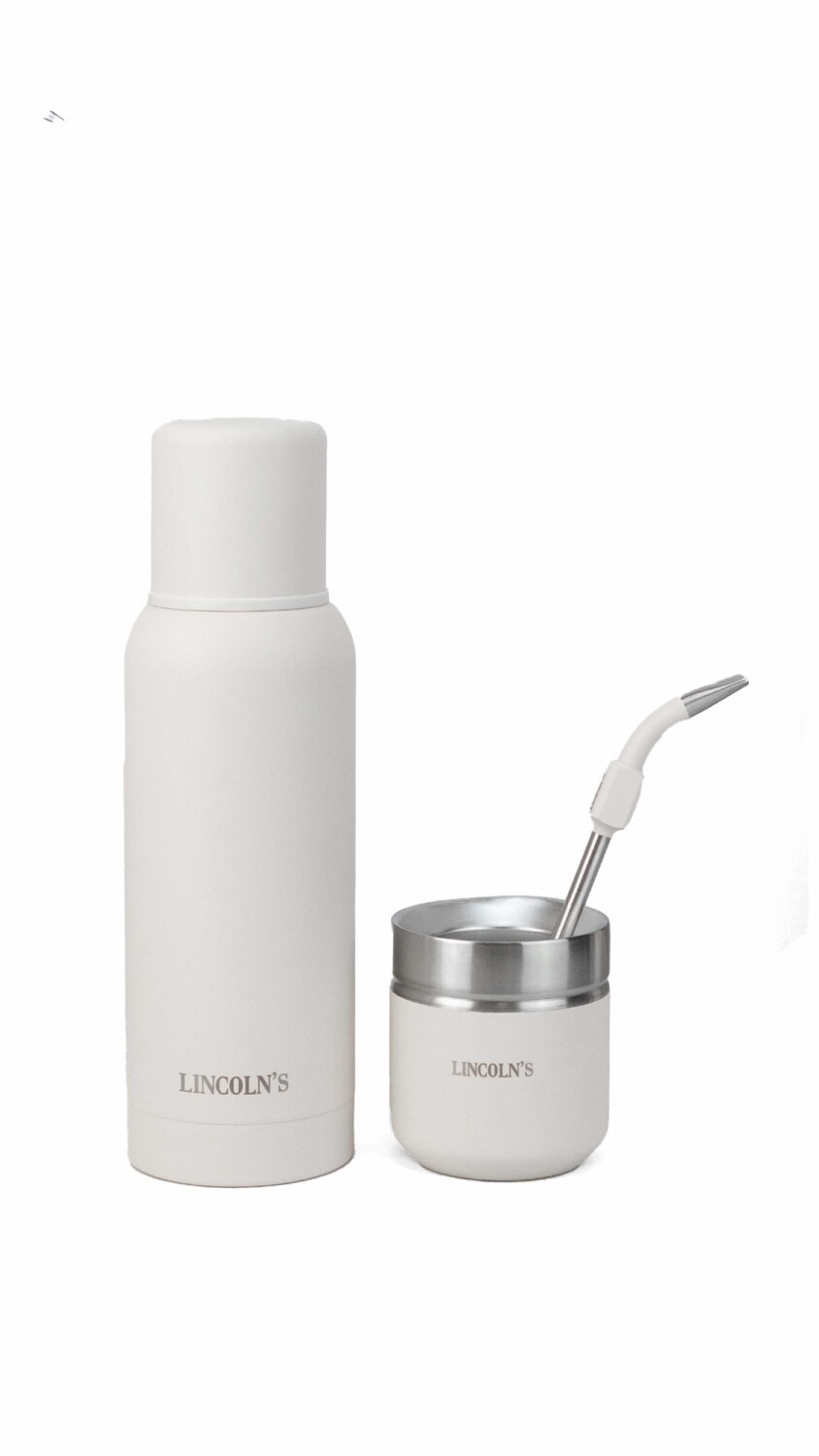 Termo de acero inoxidable con capacidad de 750 ml, mate y bombilla de acero.