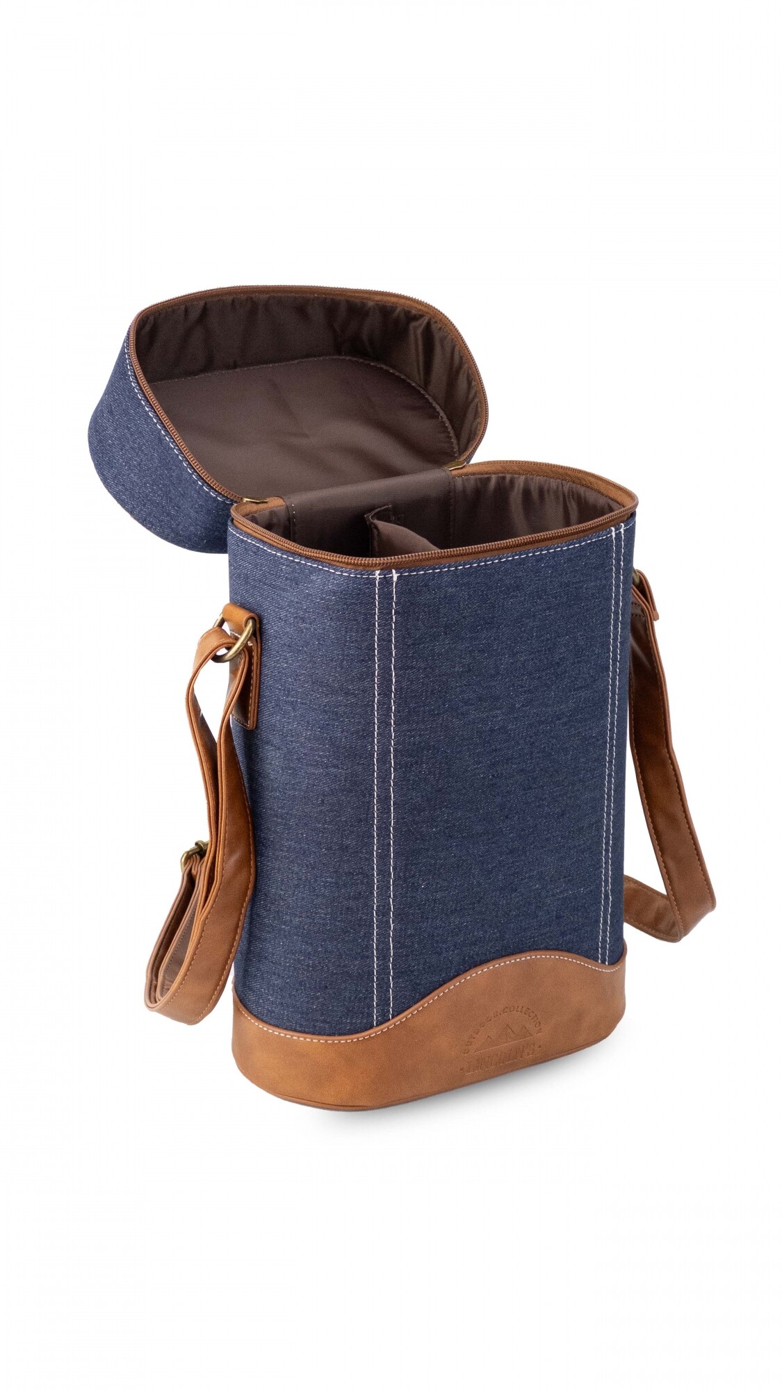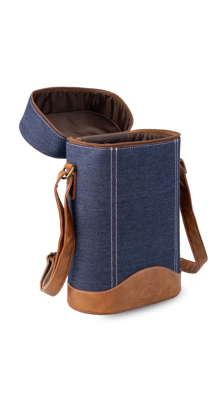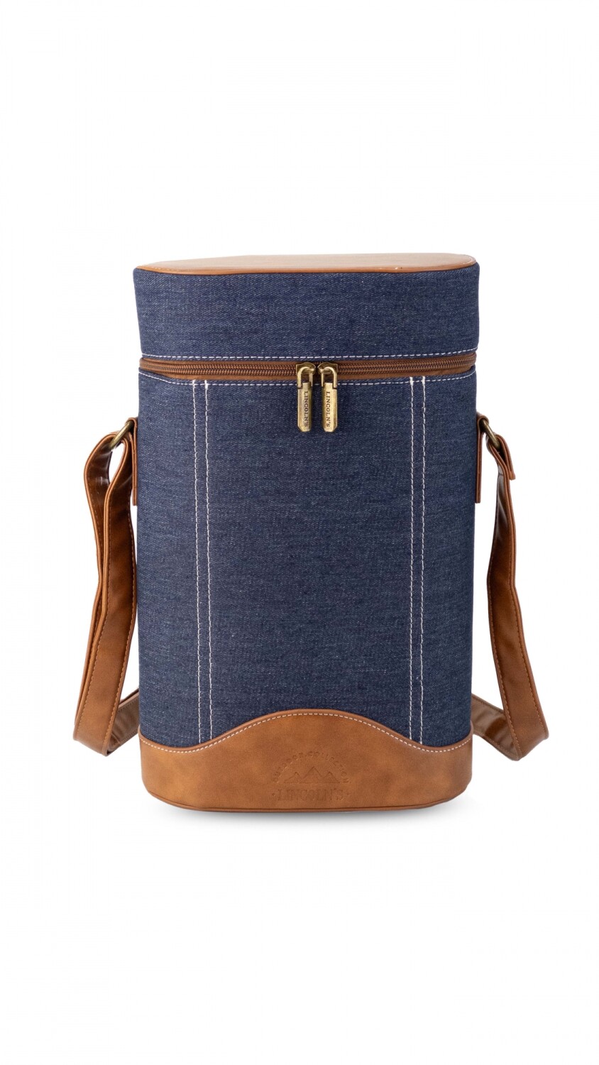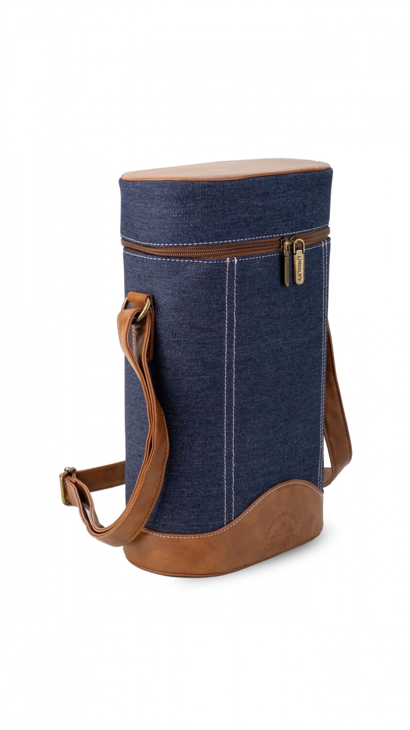 Matera con tapa y cierre combinada en tela y detalle en símil cuero. Cuenta con una división en el medio y una practica correa ajustable para llevar al hombro.