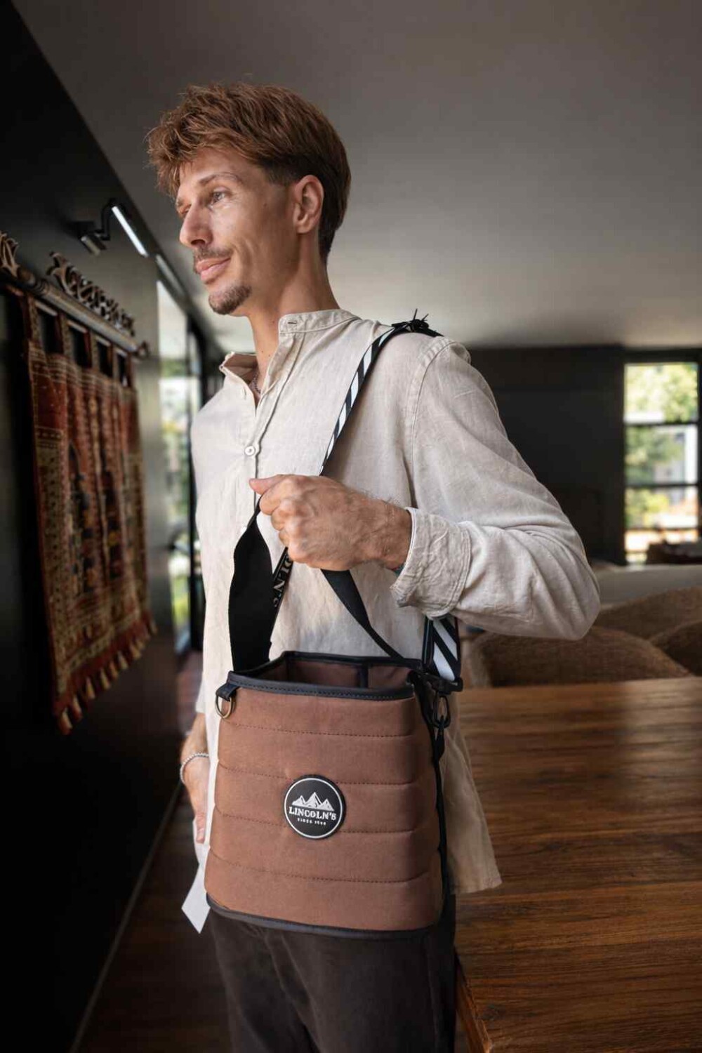 Matera confeccionada en tafeta impermeable con costuras reforzadas. Cuenta con asa corta y correa regulable, división al medio con un pequeño bolsillo interno. Práctica y resistente, ideal para llevar tu mate, termo y accesorios a todas partes.