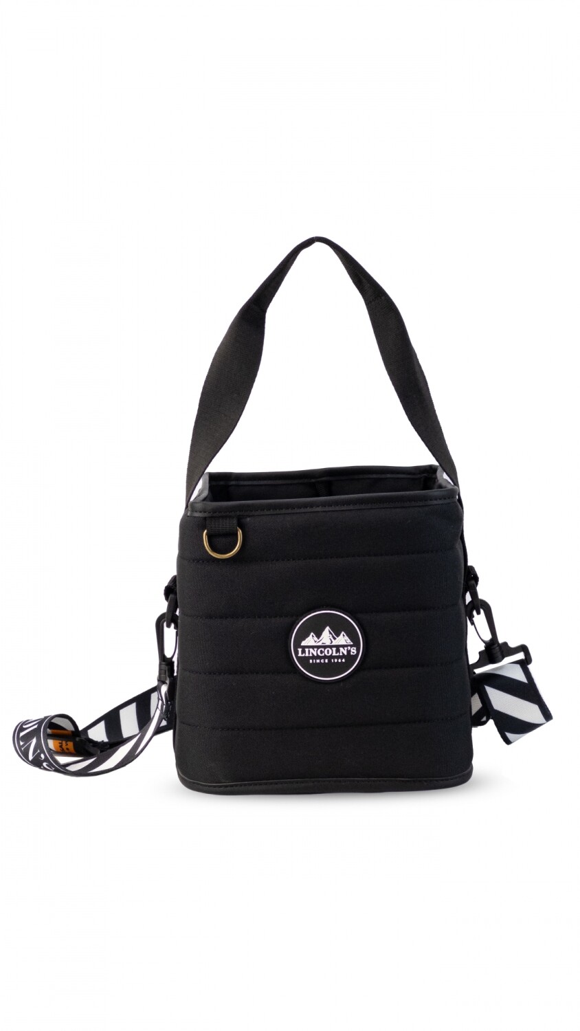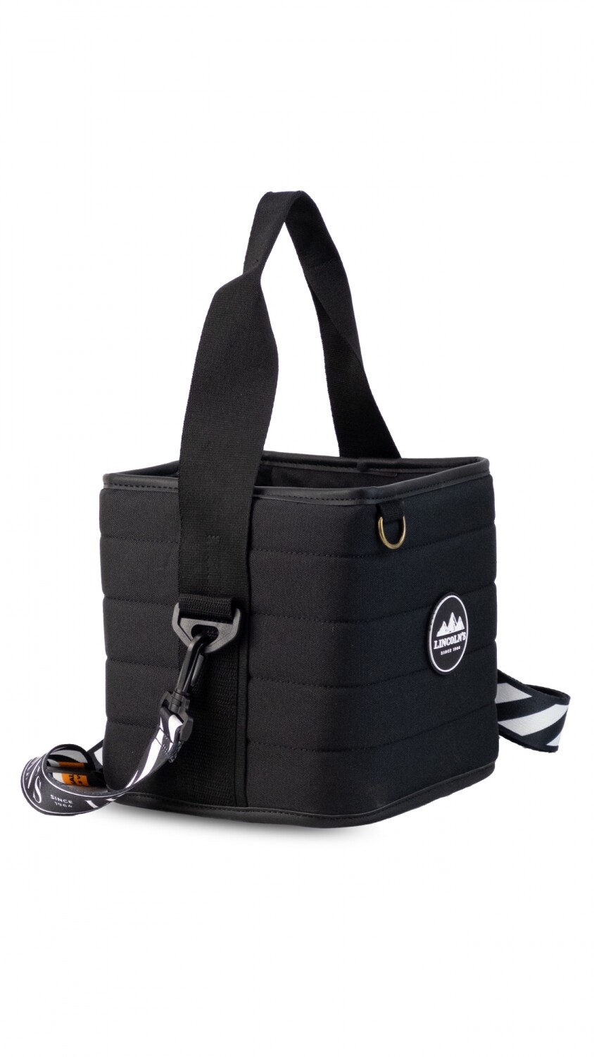 Matera de diseño moderno, confeccionada en tafeta impermeable con costuras reforzadas. Cuenta con asa corta y correa regulable para mayor comodidad. Práctica y resistente, ideal para llevar tu mate, termo y accesorios a todas partes.