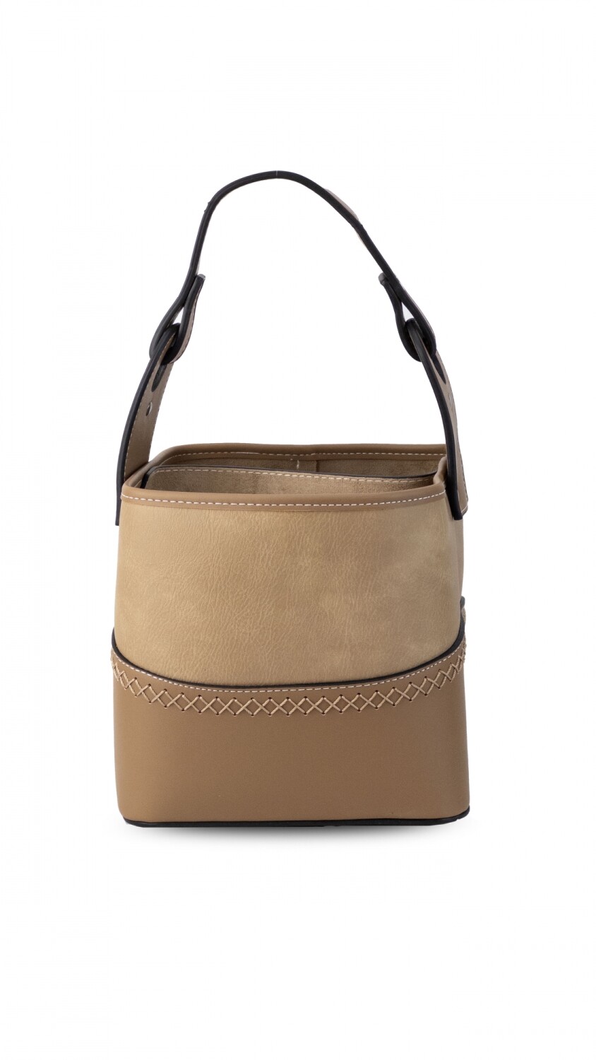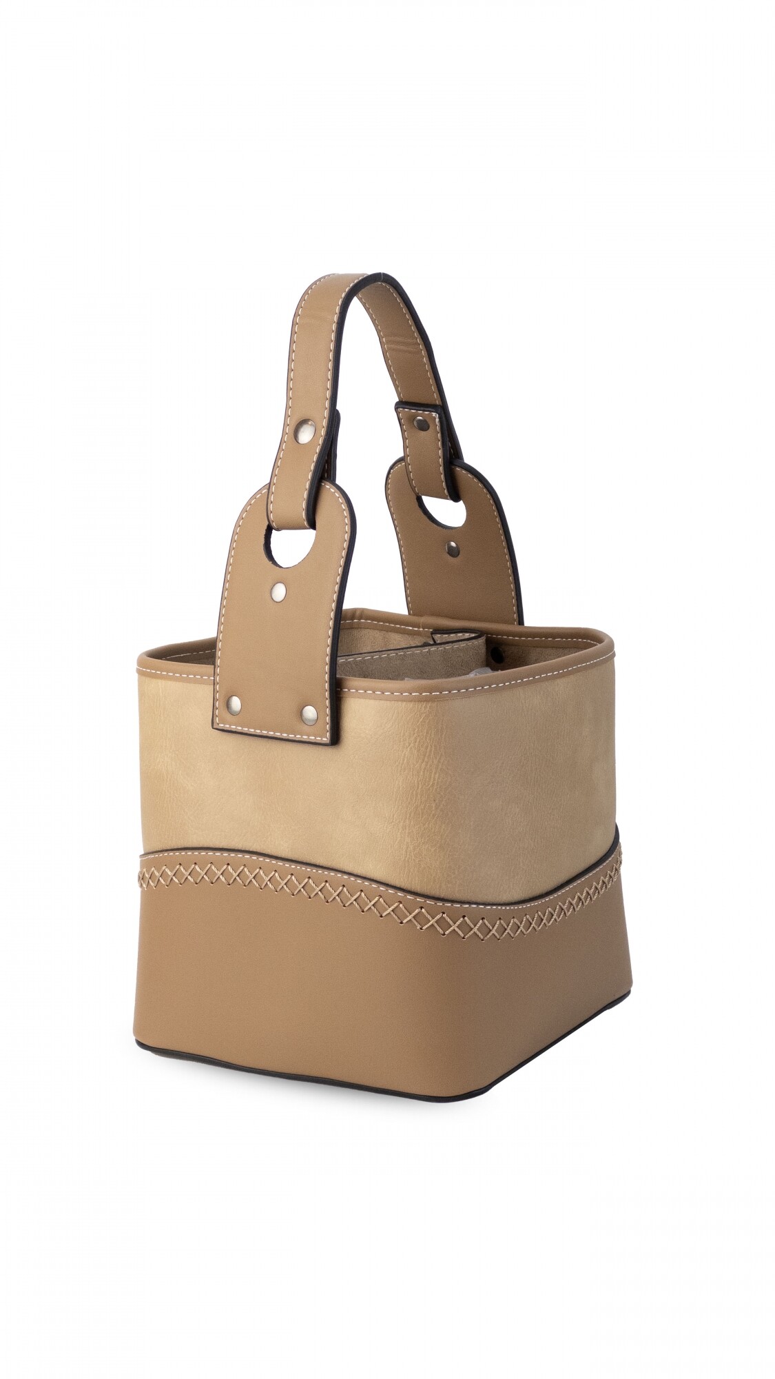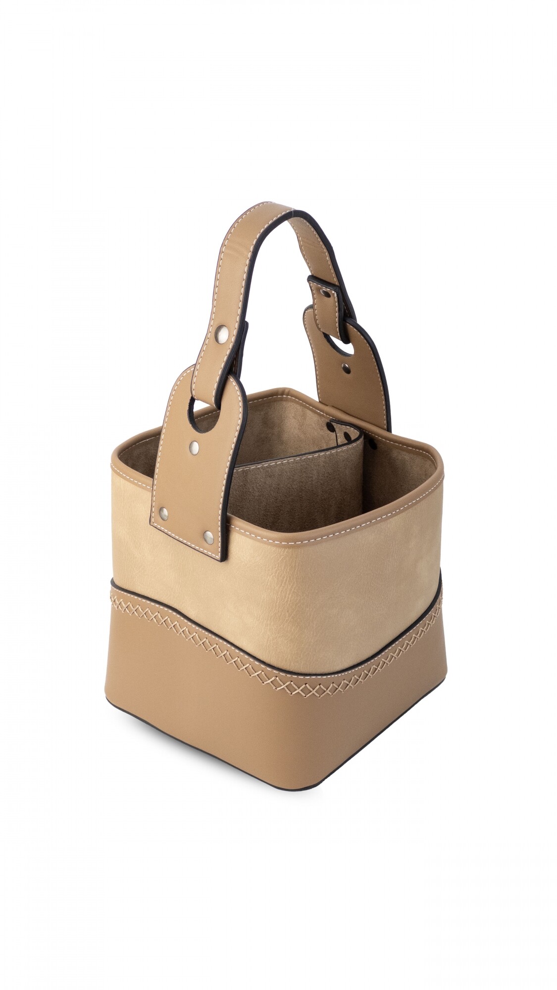 Posa termo matera reforzada en símil cuero. Diseño elegante y funcional con costuras visibles, base firme y detalle trenzado decorativo. Ideal para transportar termo y mate con estilo.