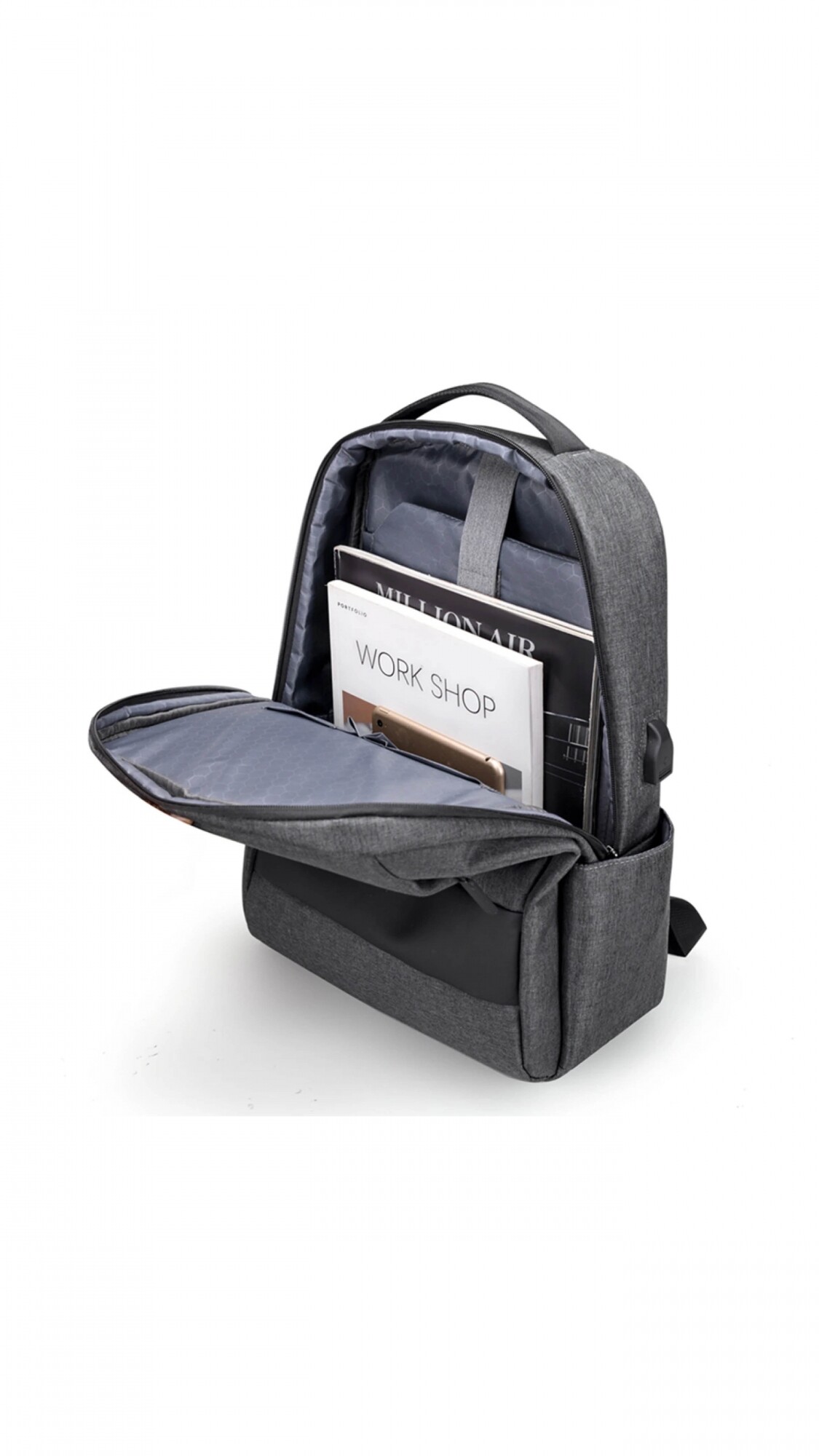 Mochila con bolsillo frontal oculto, espalda acolchada y faja para sujetar a la manija de la valija. Ofrece un compartimento especial para notebook, combinando comodidad y seguridad en un diseño práctico, ideal para viajes o el día a día.