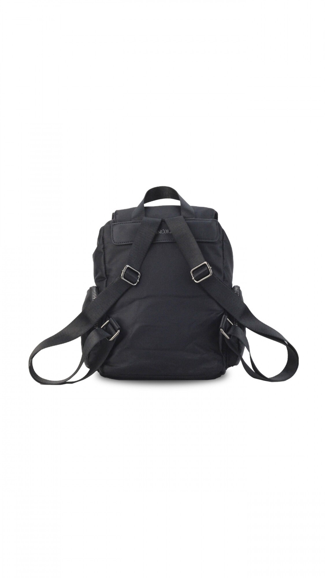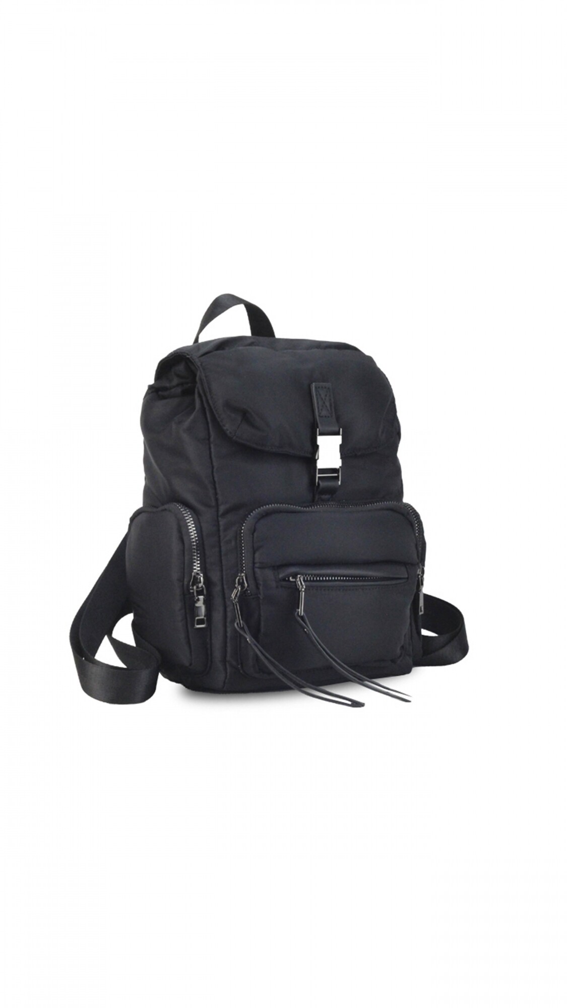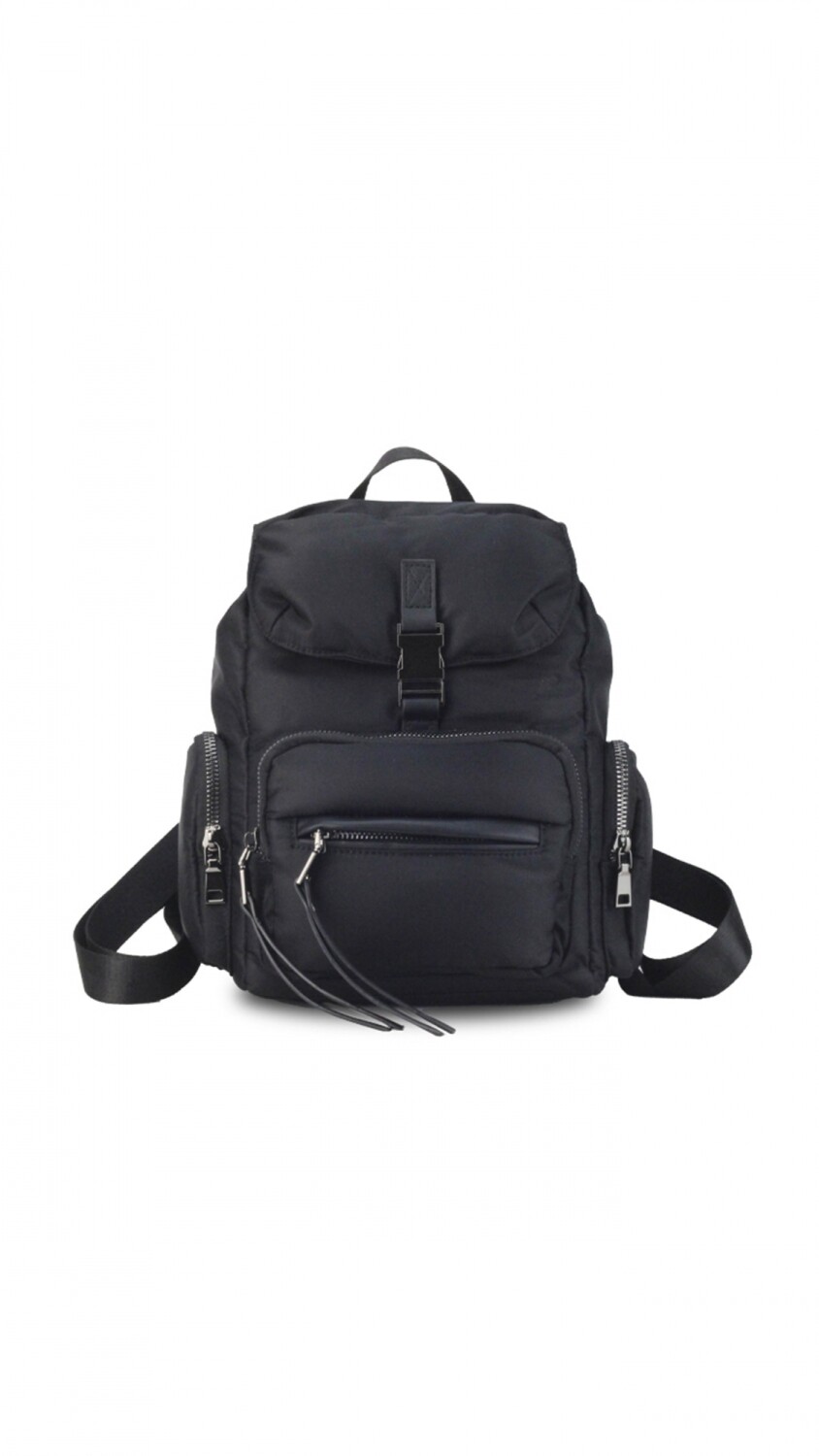 Mochila en nylon . Con tapa y broche metálico. Apertura superior con broche