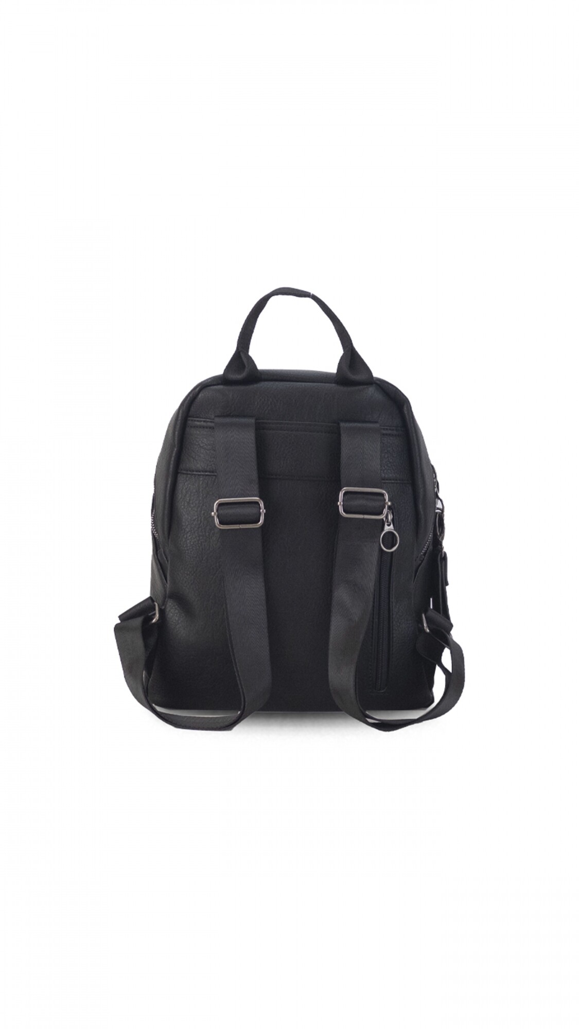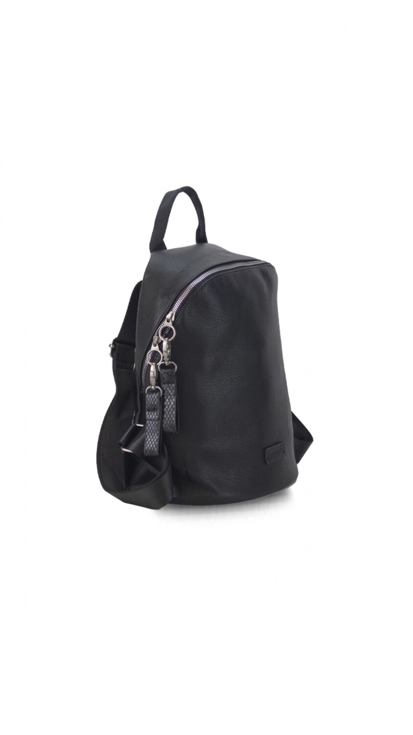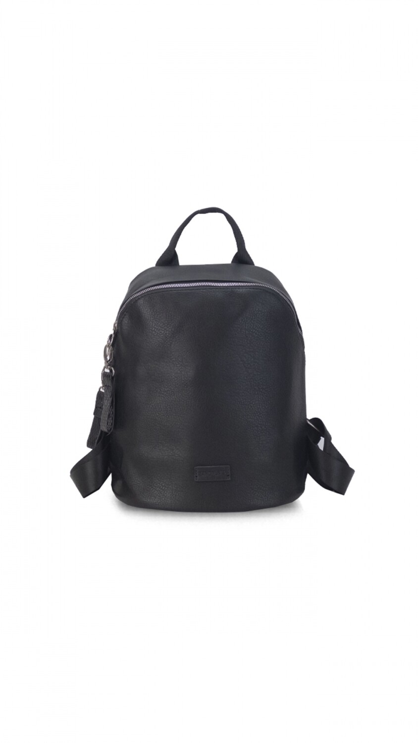 Mochila en símil cuero. Apertura por cierre al interior de gran capacidad.