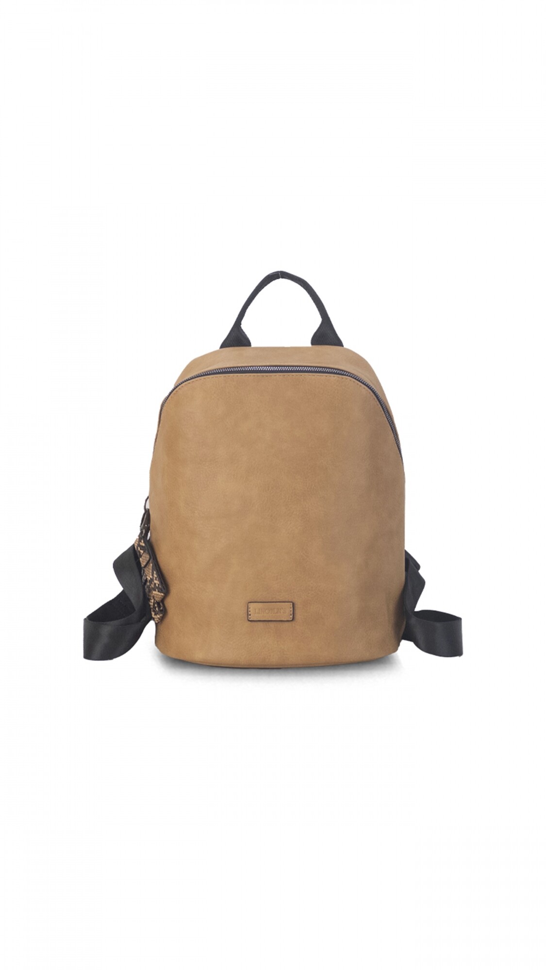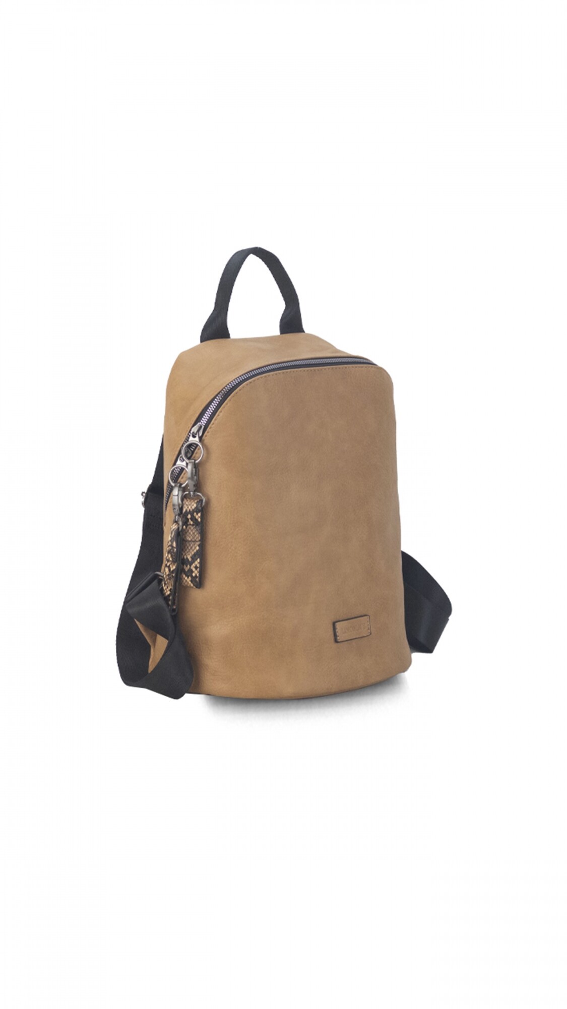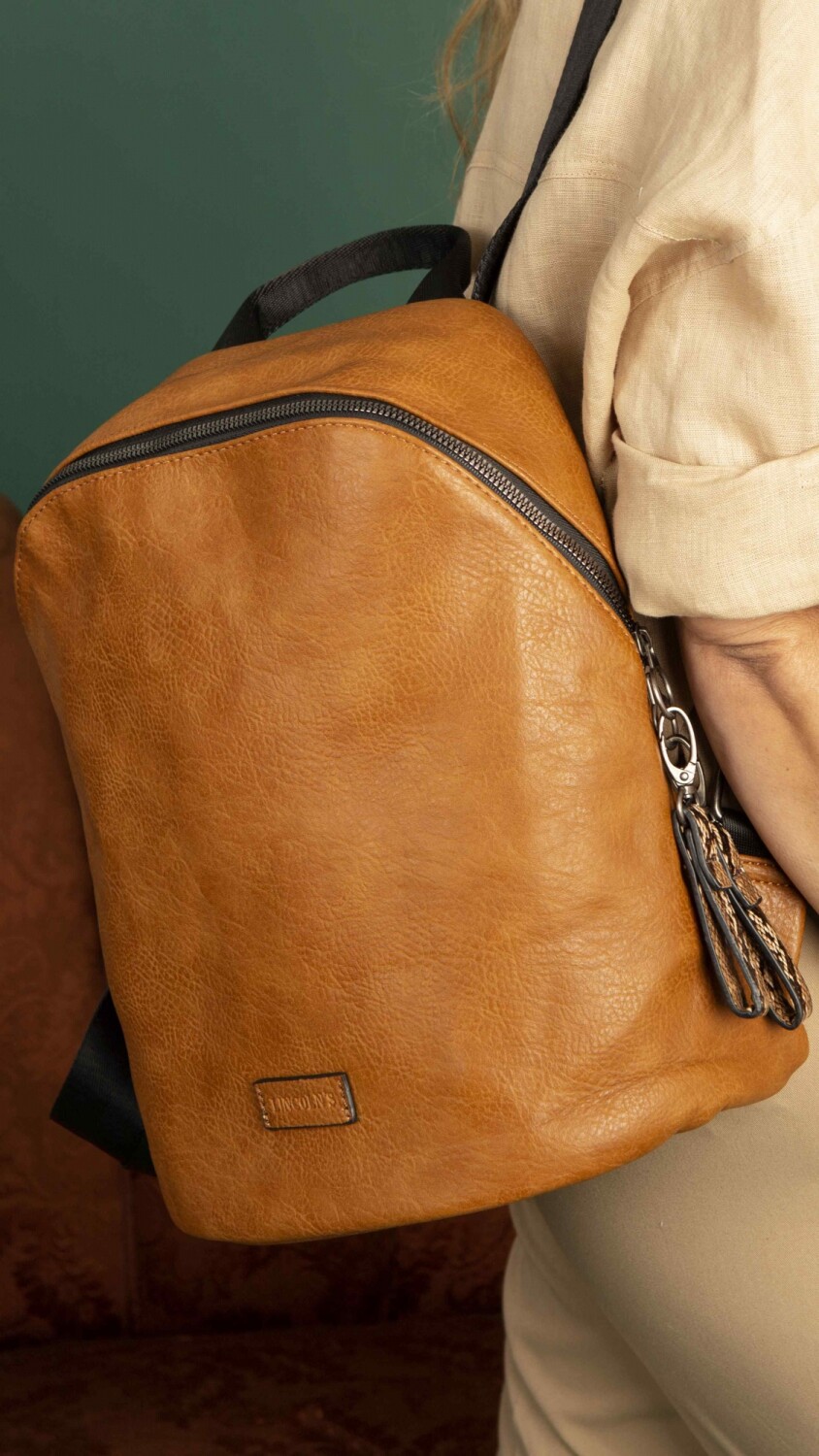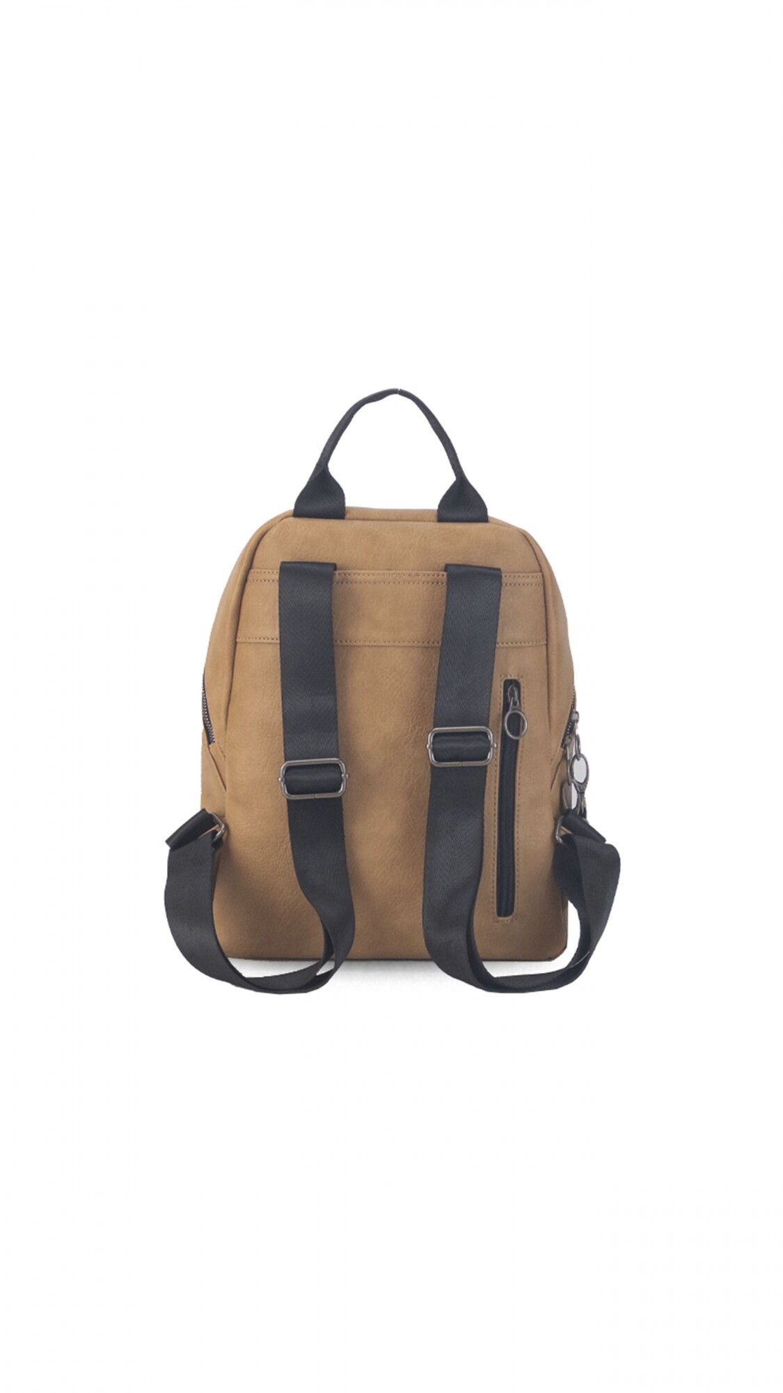 Mochila en símil cuero. Apertura por cierre al interior de gran capacidad.