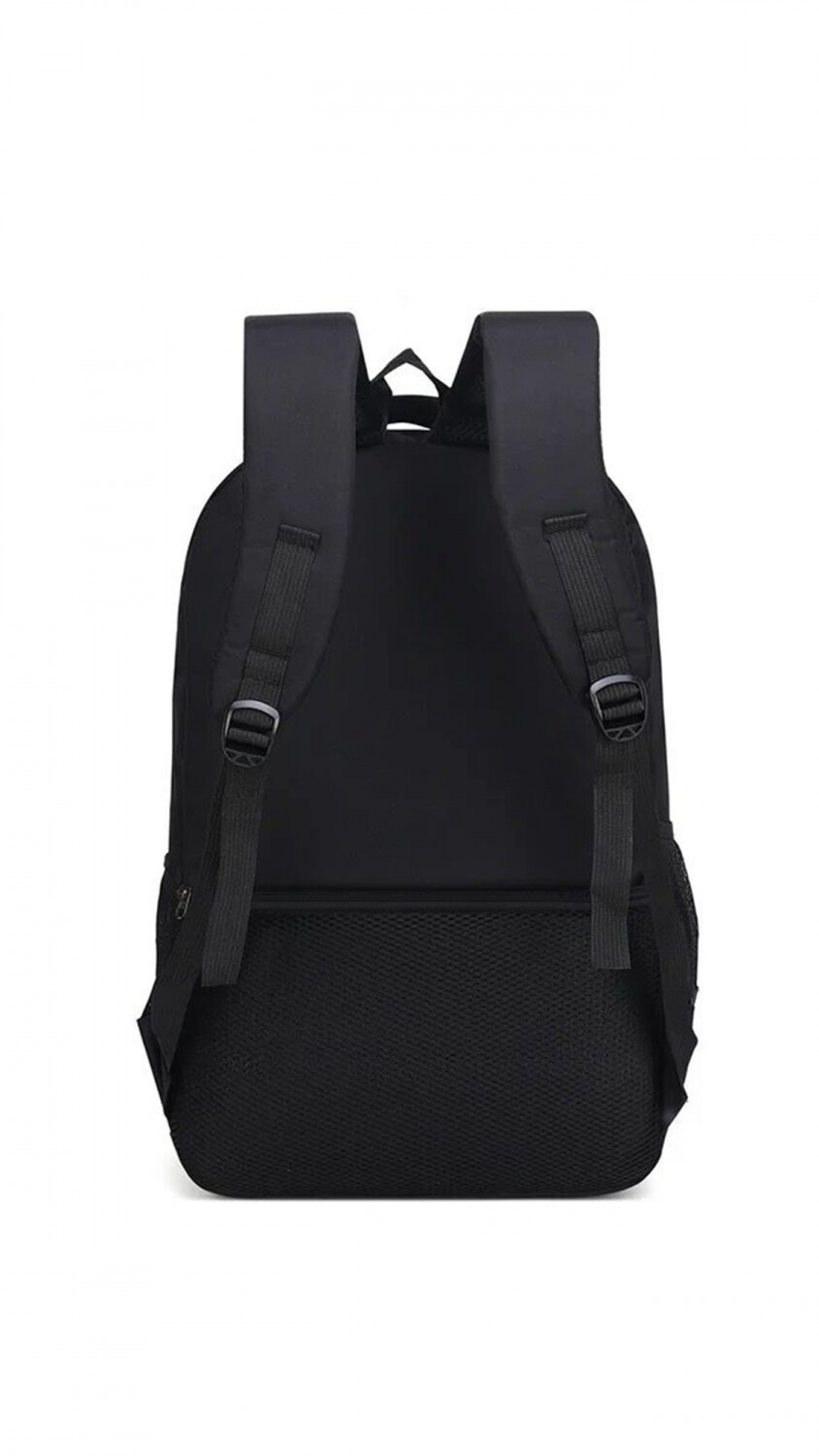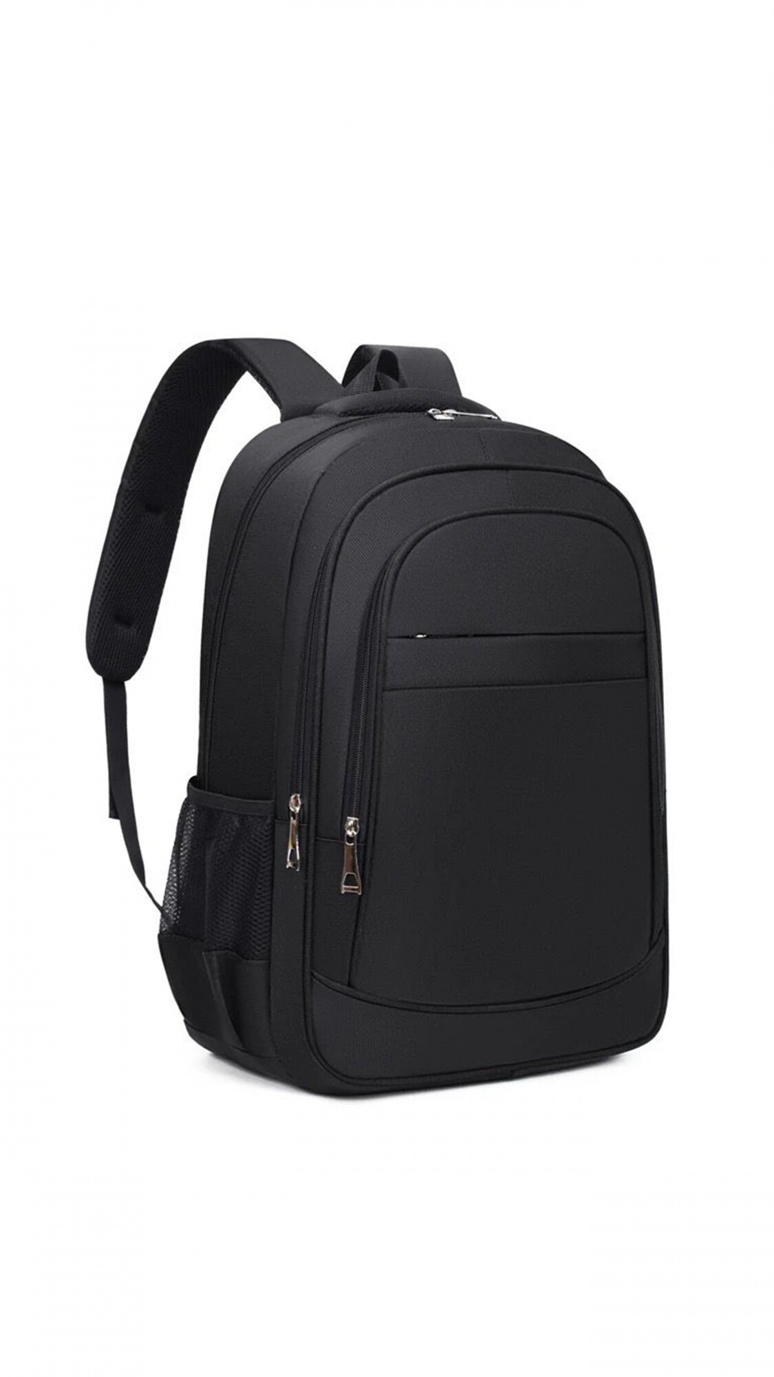 Mochila con bolsillo frontal, tres divisiones con cierre y capacidad para notebook. Incluye bolsillos laterales de rejilla para botellas. Perfecta para quienes buscan organización y comodidad en su día a día o en viajes.