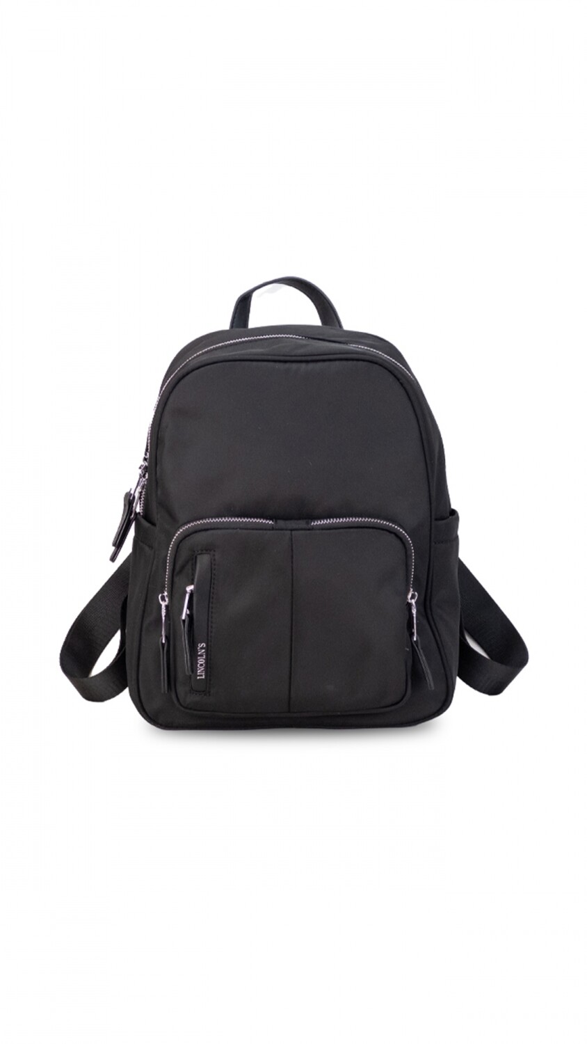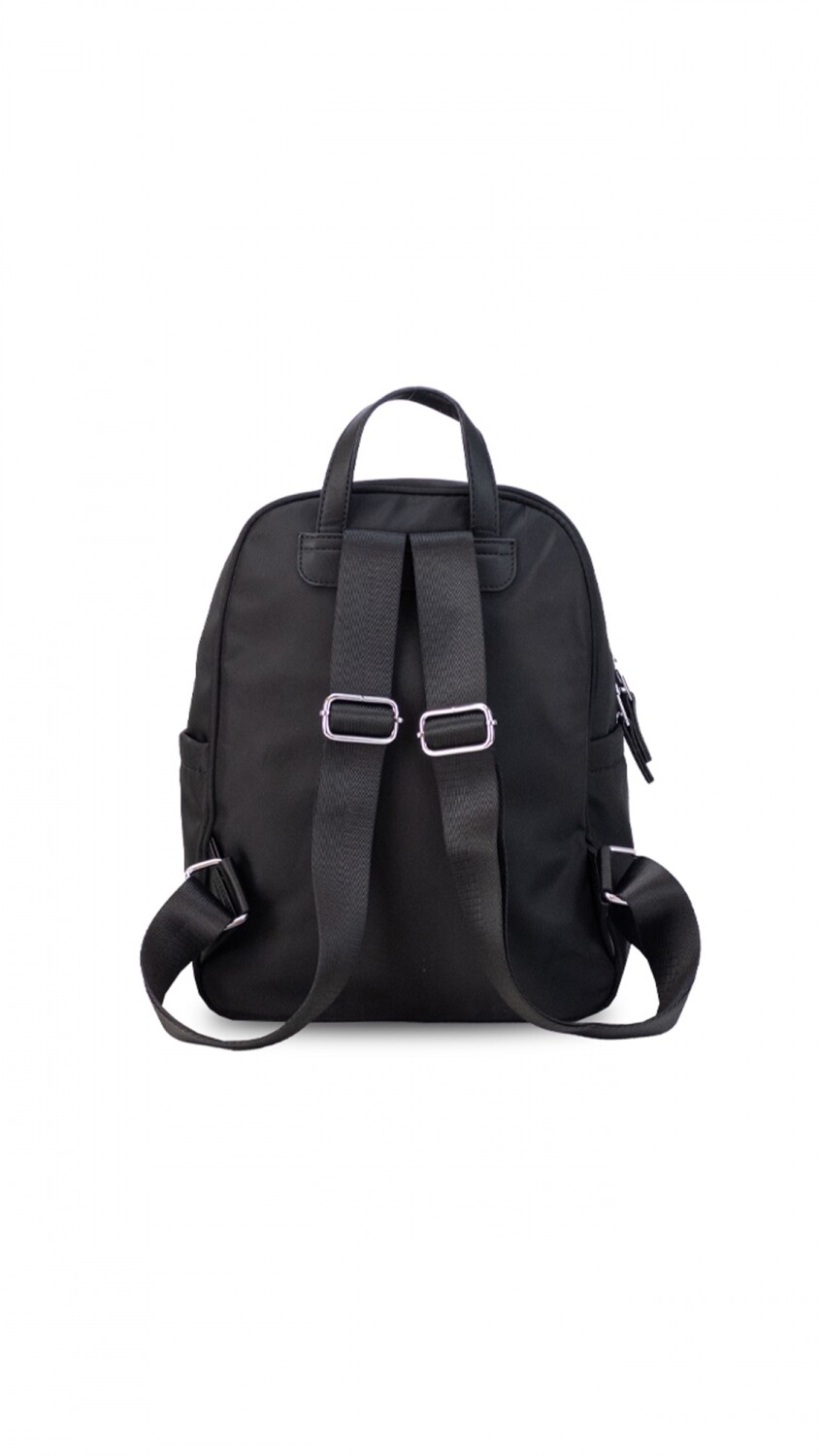 Mochila de nylon resistente con cierre principal y dos bolsillos frontales para un acceso rápido. Su diseño ligero y funcional la hace ideal para el uso diario y actividades al aire libre.