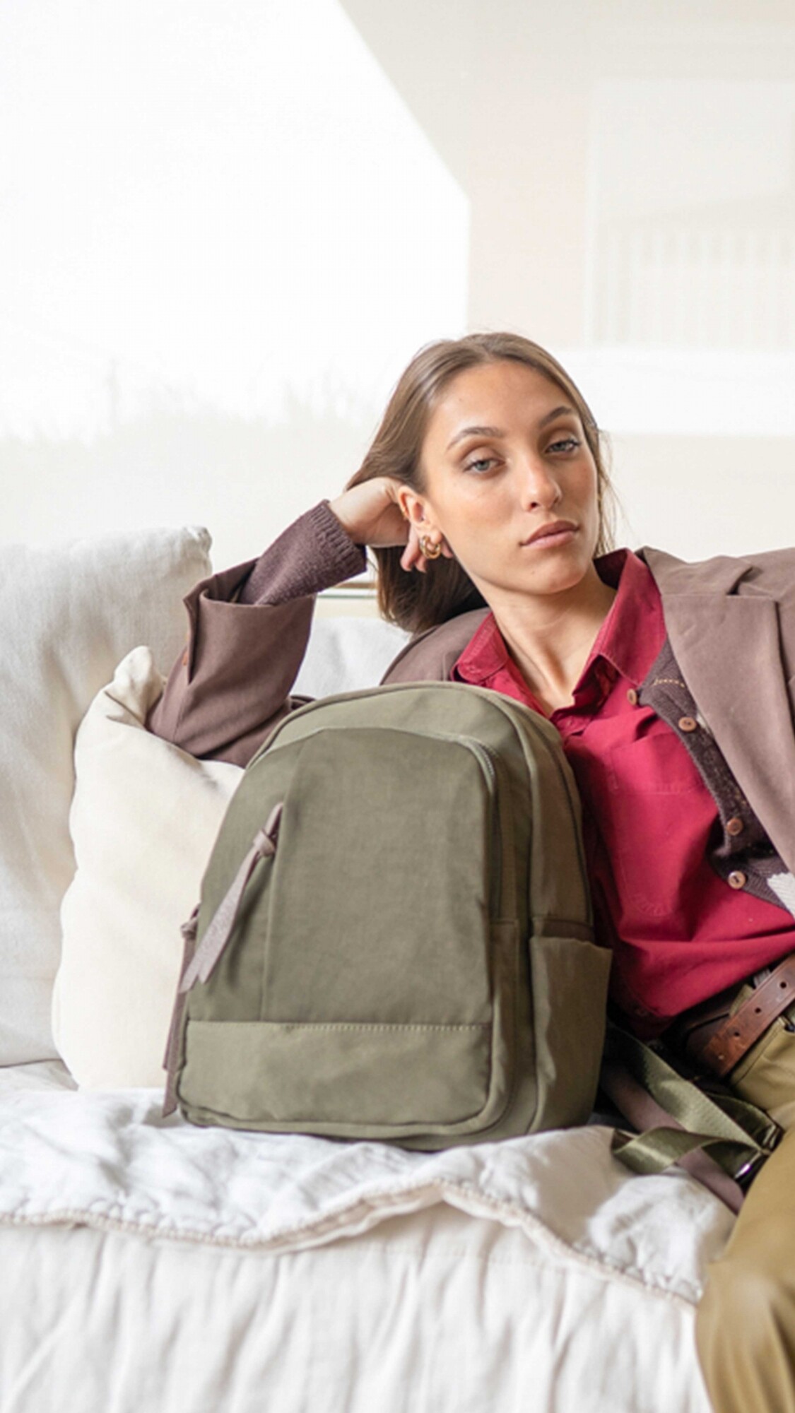 Mochila en tafeta con excelente distribución interna. Apertura frontal y dos bolsillos al frente con cierres metálicos. Incluye bolsillos internos. Correas regulables en galón. Bolsillitos laterales y bolsillo al dorso.