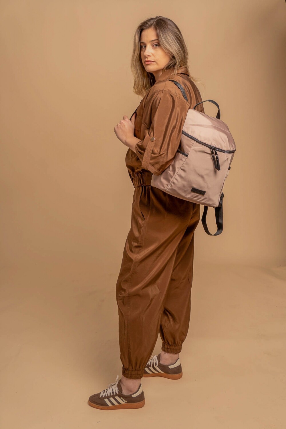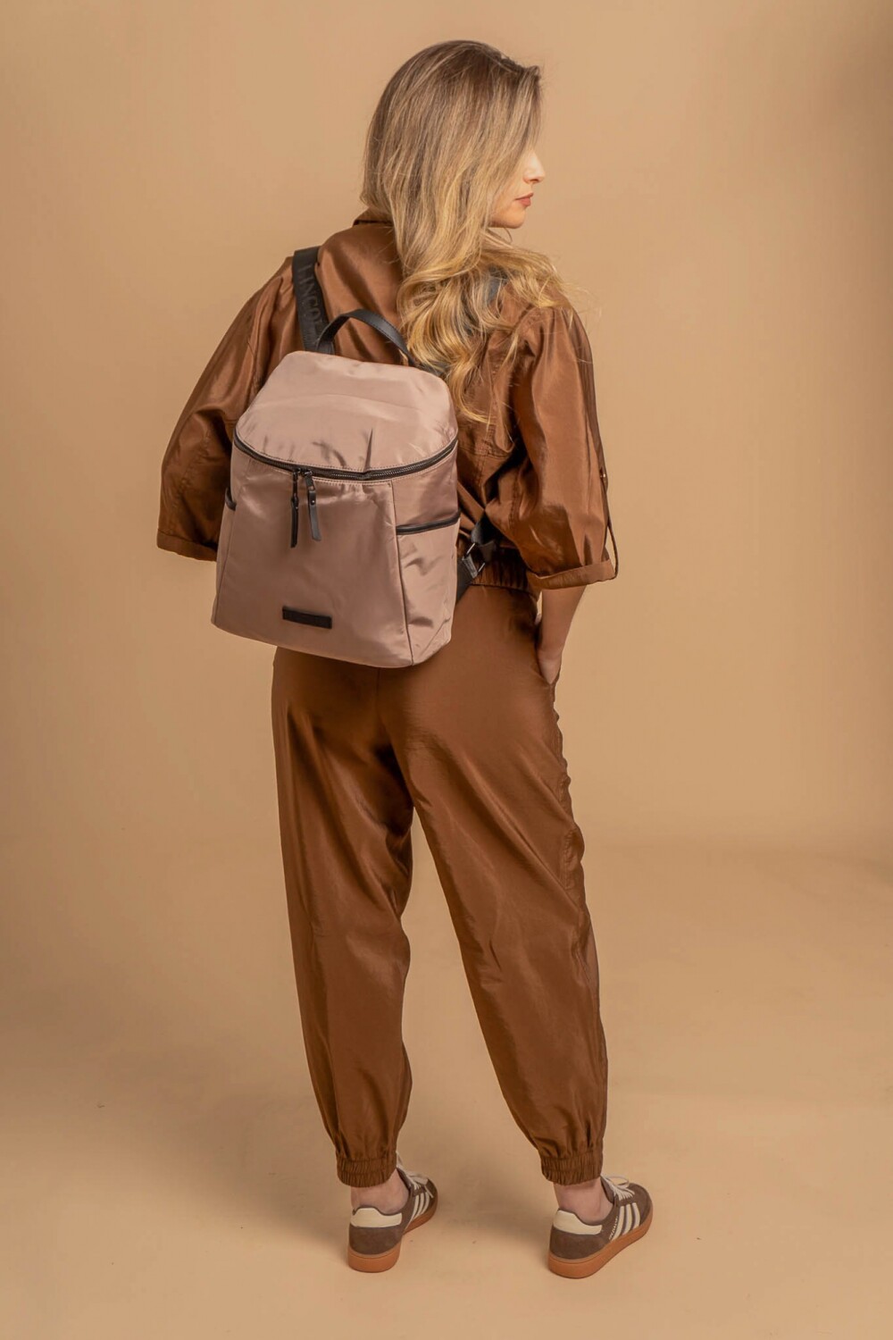 Mochila urbana de diseño compacto y moderno, ideal para el día a día. Con cierre doble, bolsillo frontal y laterales para mayor practicidad. Fabricada en material resistente, cómoda y versátil para llevar tus esenciales con estilo.