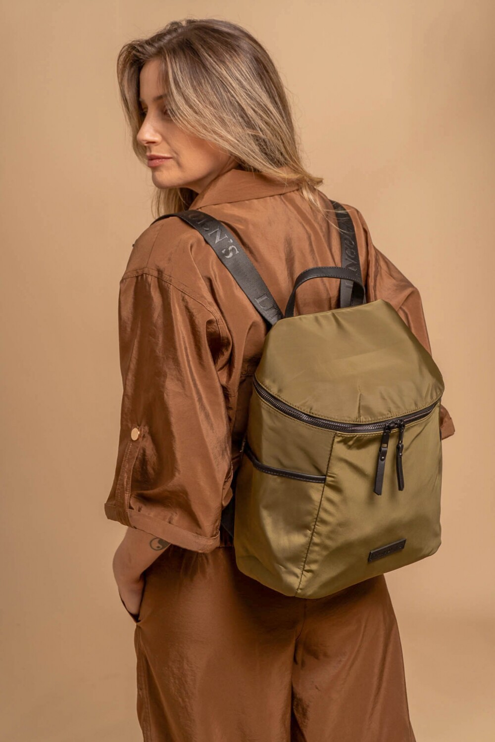 Mochila urbana de diseño compacto y moderno, ideal para el día a día. Con cierre doble, bolsillo frontal y laterales para mayor practicidad. Fabricada en material resistente, cómoda y versátil para llevar tus esenciales con estilo.