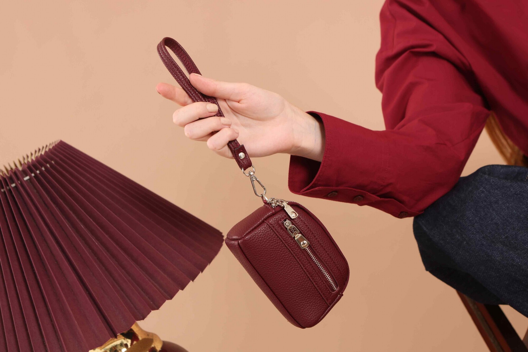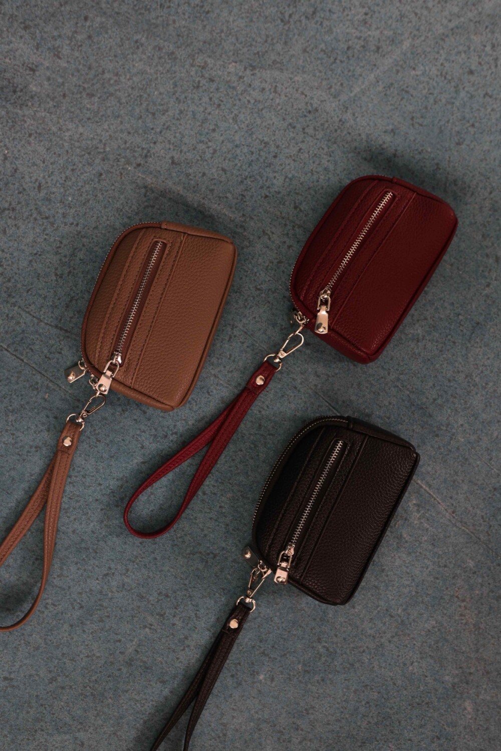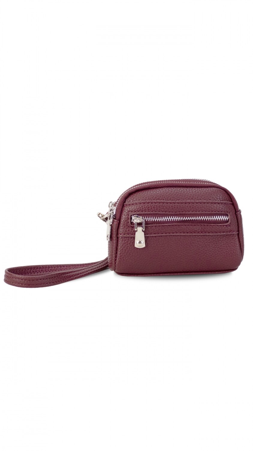 Monedero de dama con correa para la mano, diseño práctico y compacto. Bolsillo principal con doble cierre, y un bolsillo frontal pequeño para llevar tus monedas de forma organizada.