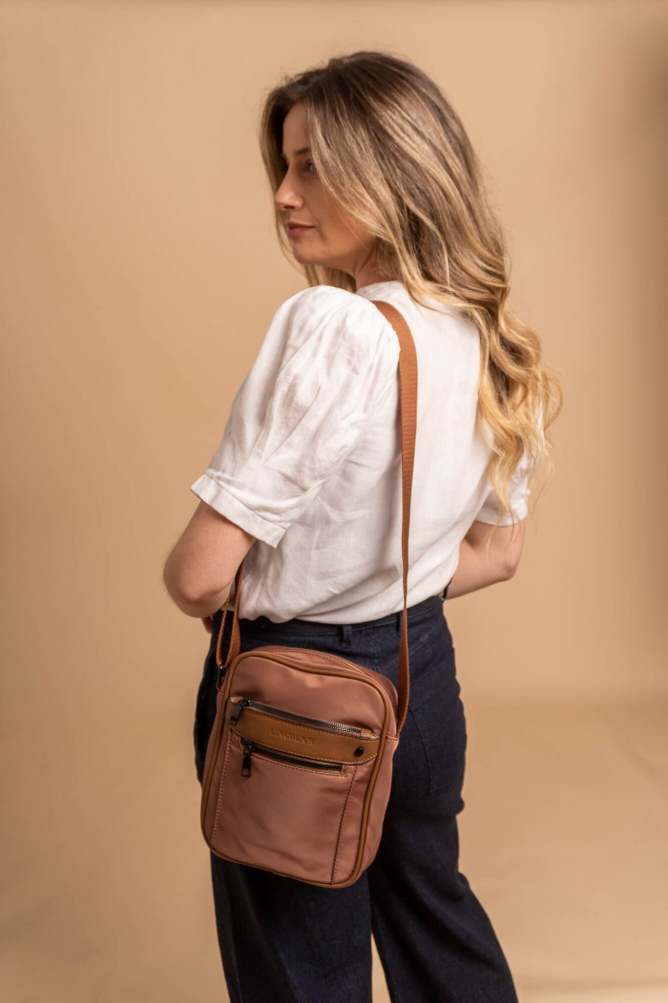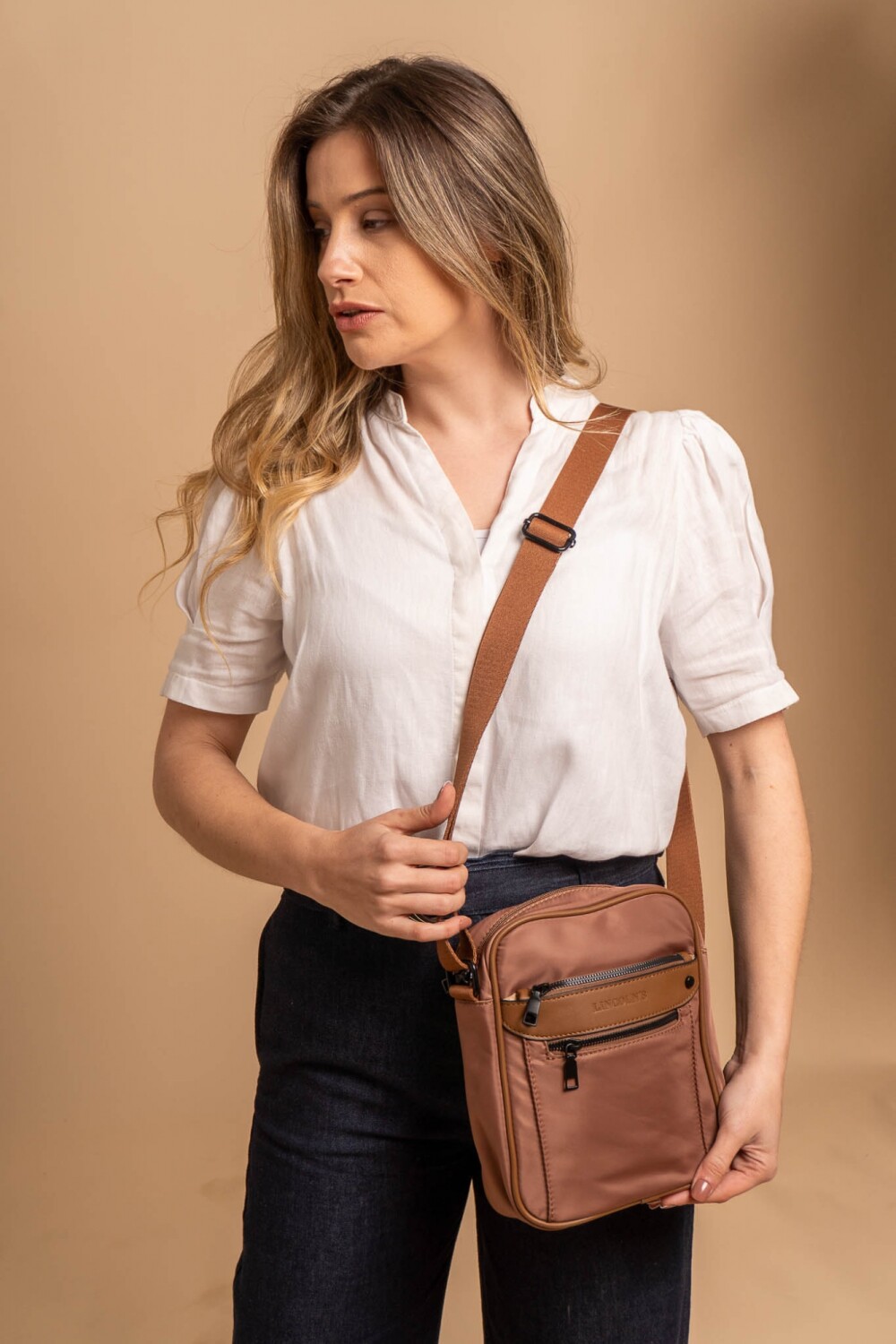 Cuenta con dos bolsillos frontales con cierre y dos bolsillos internos para mejor organización. Incluye correa ajustable para mayor comodidad y uso diario.