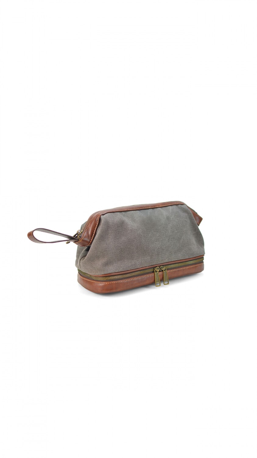 Neceser en tela canva combinado con símil cuero. Apertura superior con cierre