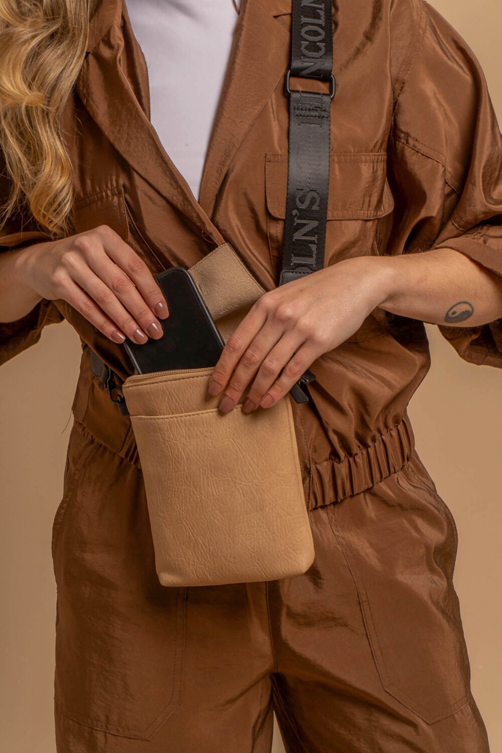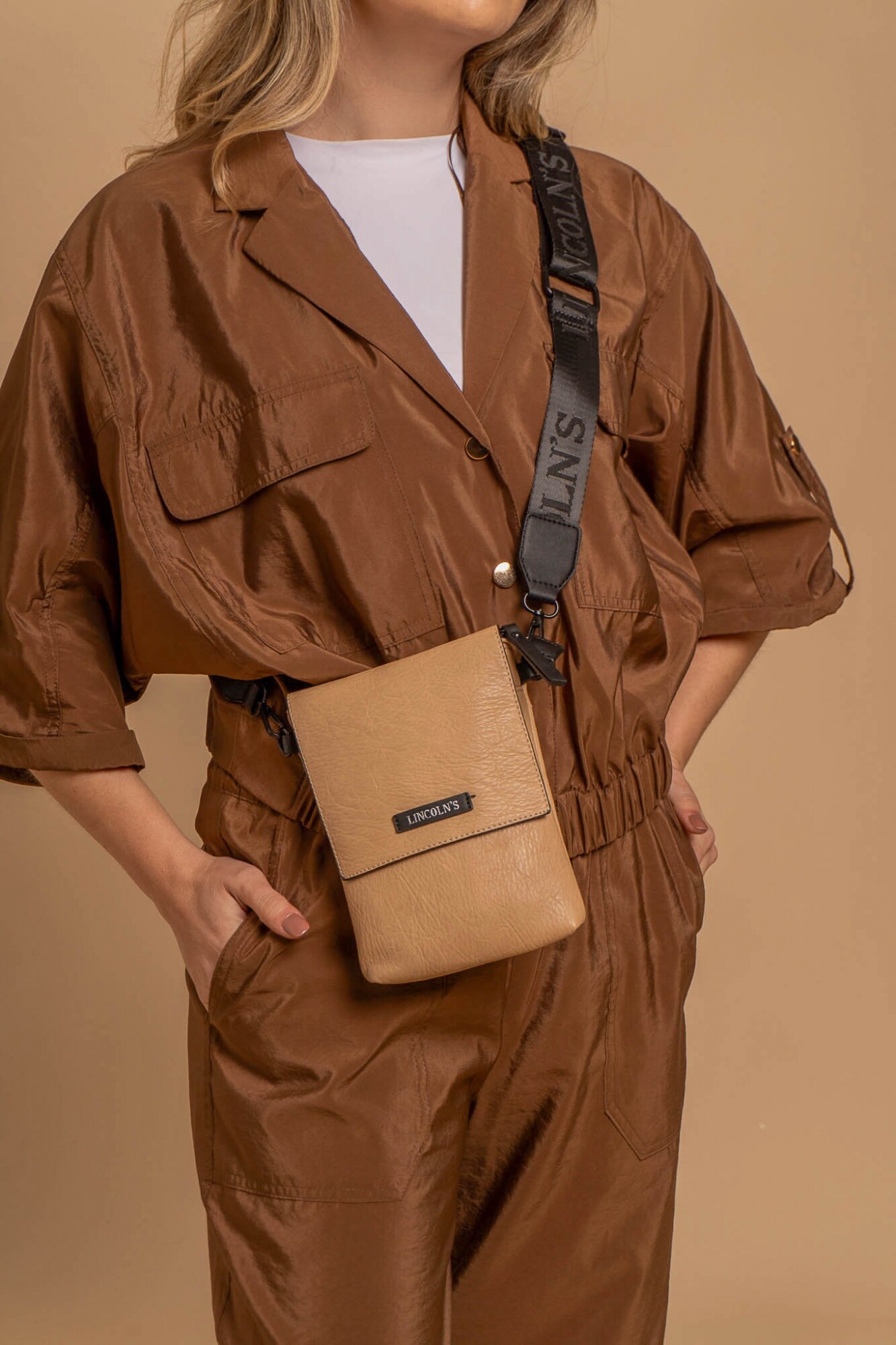 Bandolerita tipo phonebag pequeña, símil cuero, con correa galón regulable. Cuenta con un compartimiento principal y bolsillo adicional con tapa. Ideal para uso diario y llevar lo esencial con estilo.