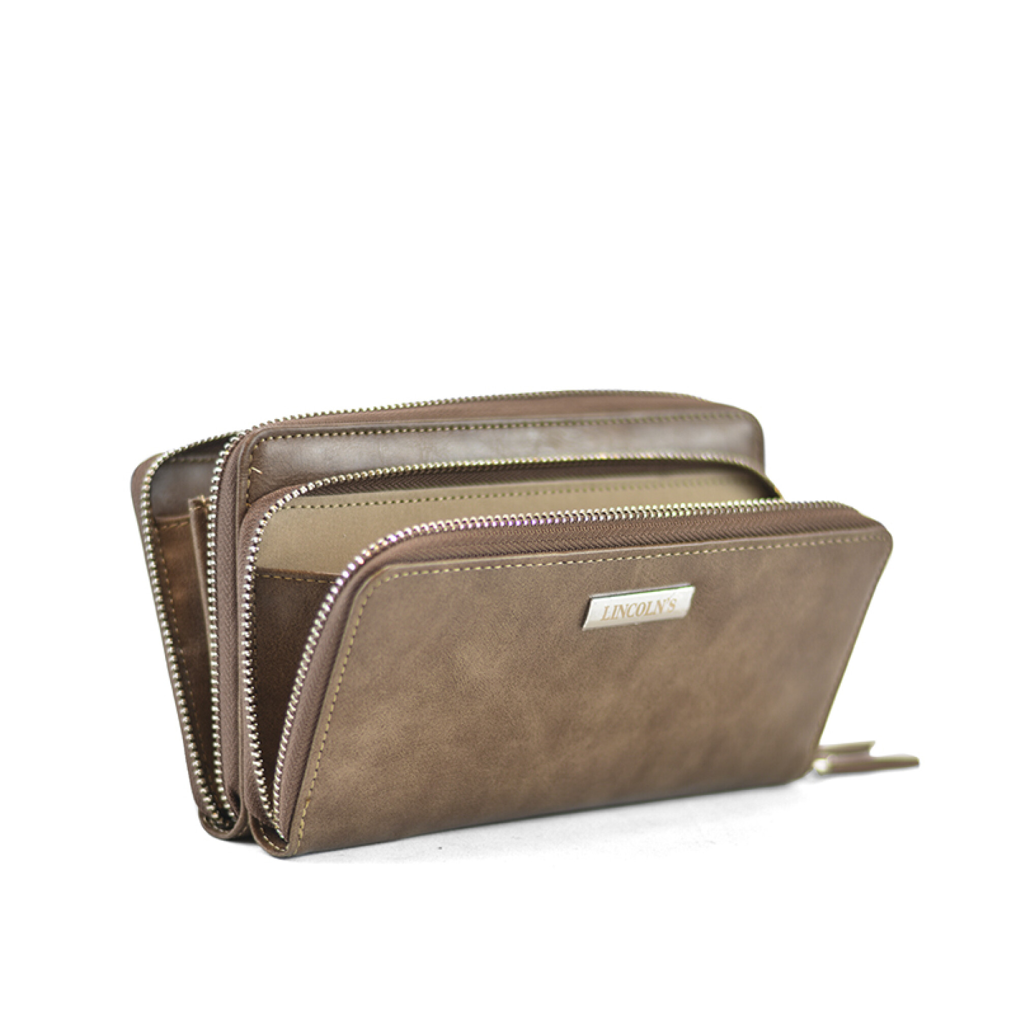 Por dentro bolsillos para documentos, reparticiones para tarjetas y división para billetes.