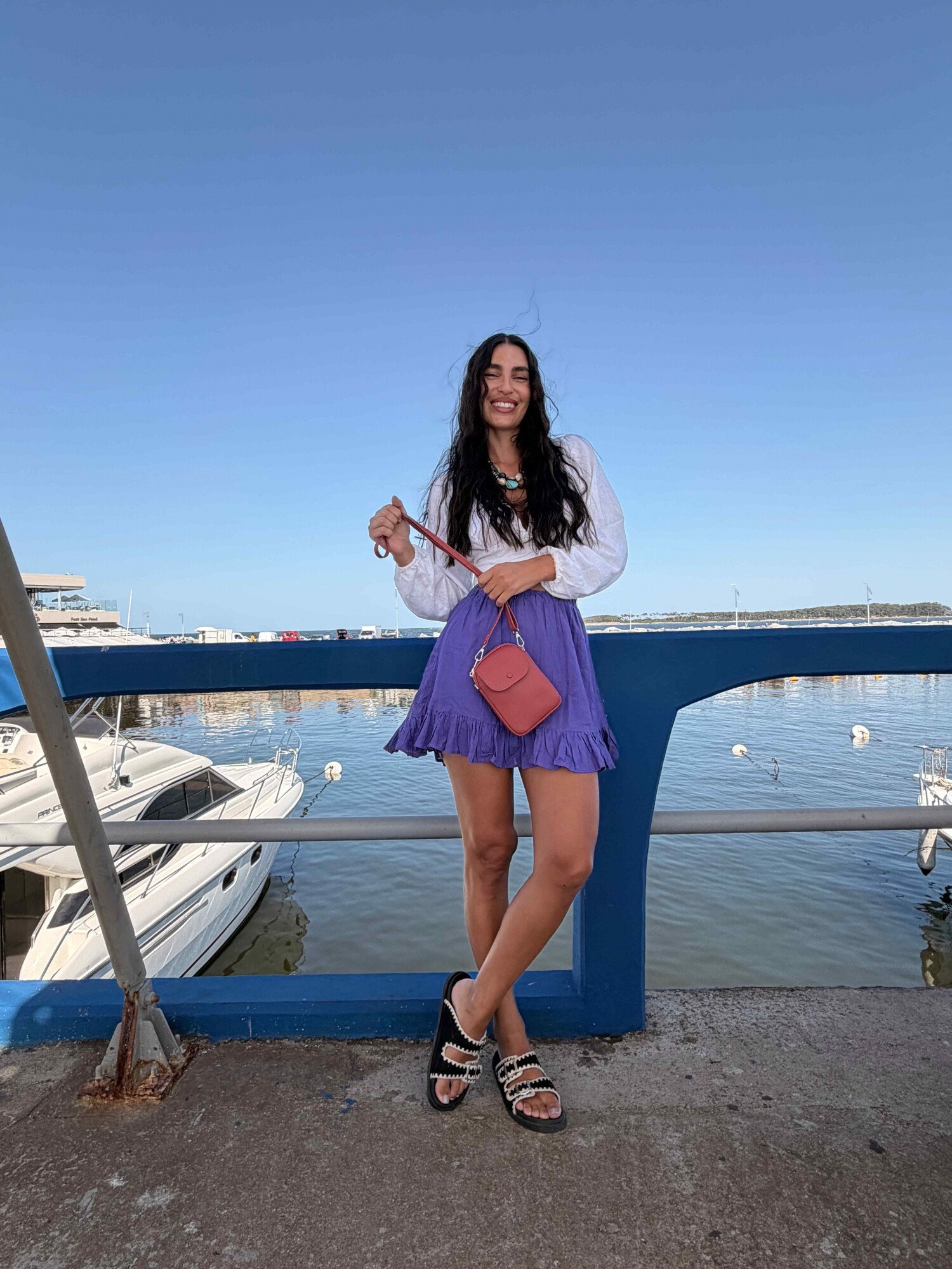 Bandolera pequeña y compacta realizada en símil cuero, con correa ajustable del mismo material. Cuenta con cierre principal y bolsillo frontal con tapa y broche metálico.