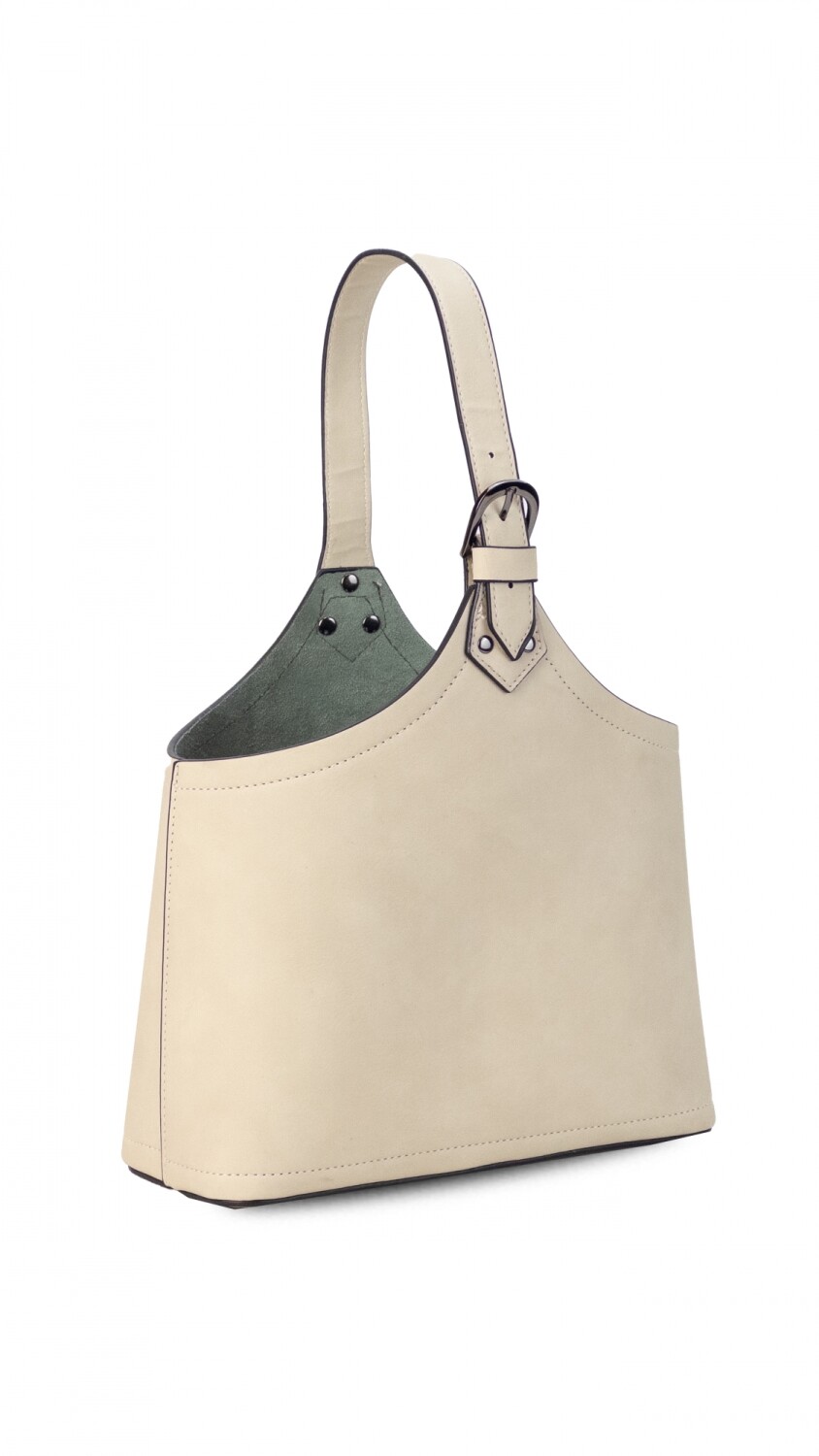 Posatermo con división al medio, asa con hebilla regulable para mayor comodidad. Detalle de pespunte visible que resalta su diseño funcional y moderno. Ideal para uso diario.