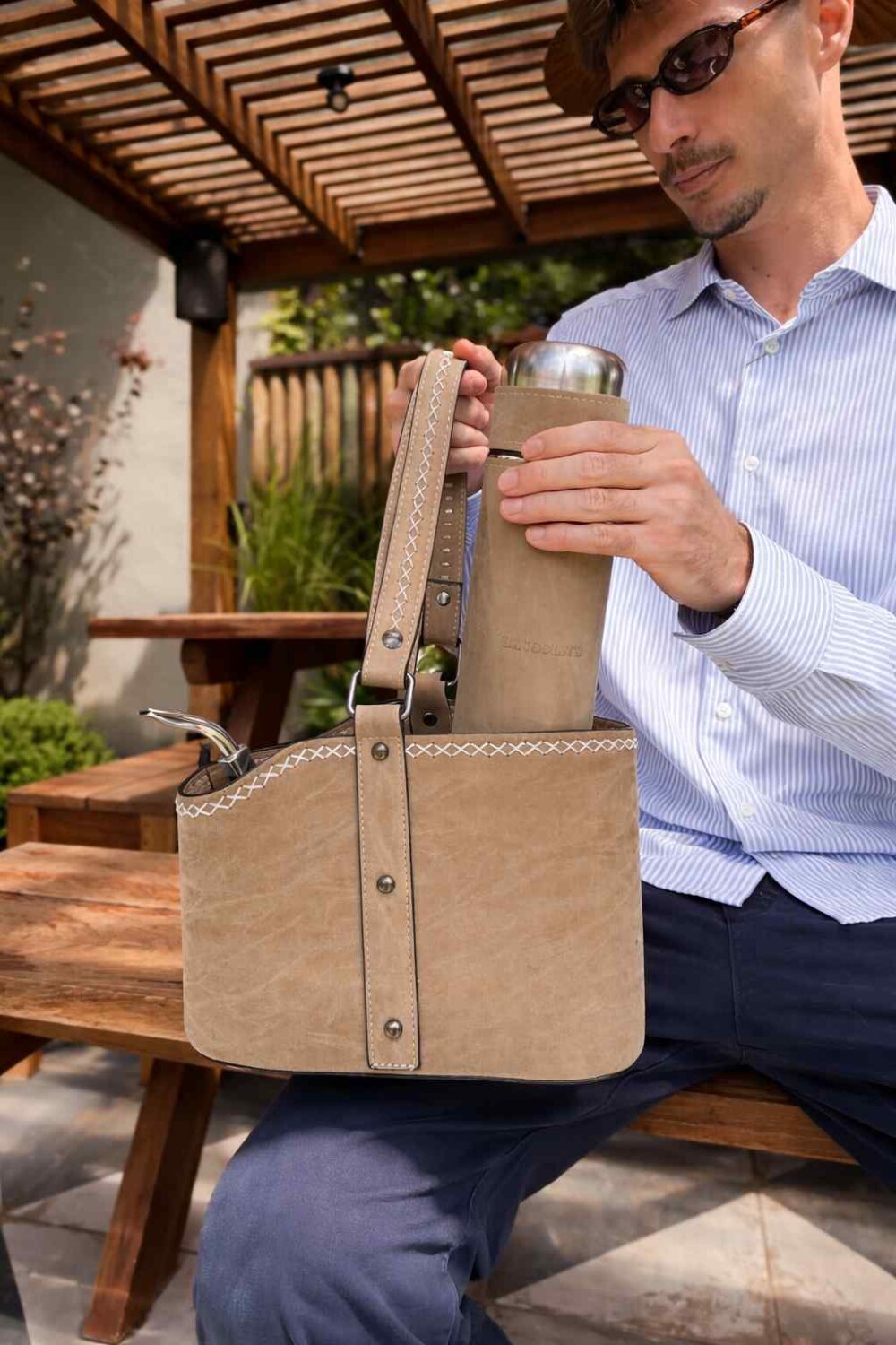 Detalles en costura artesanal y herraje.
