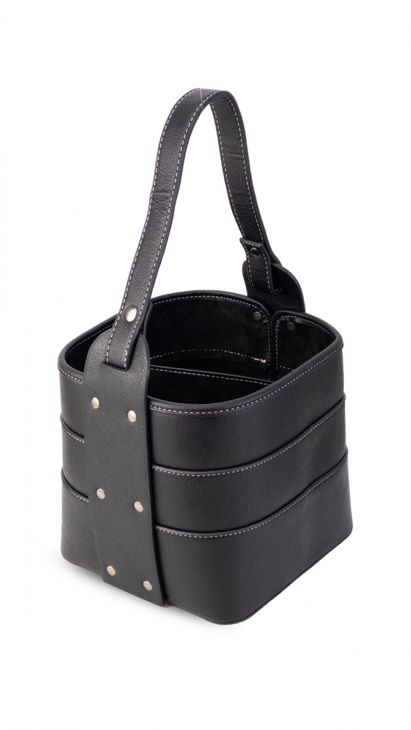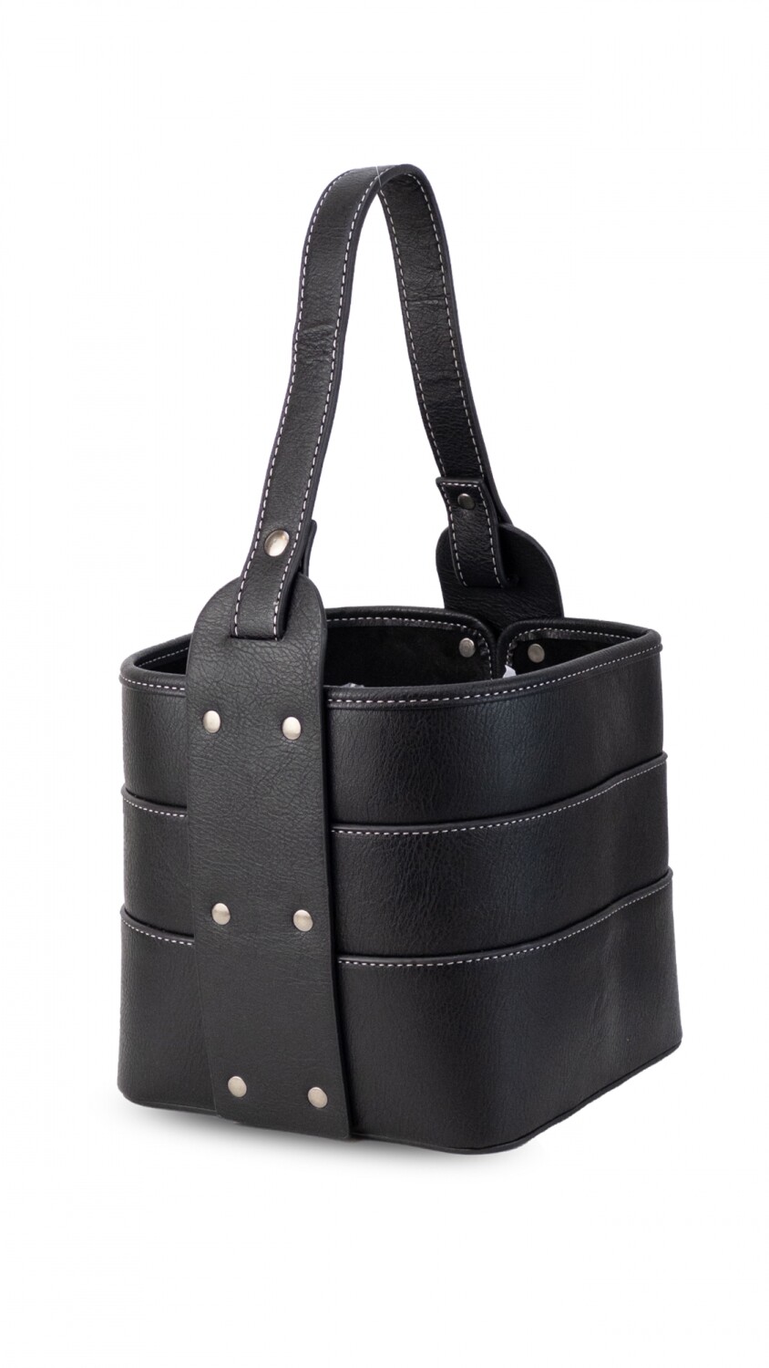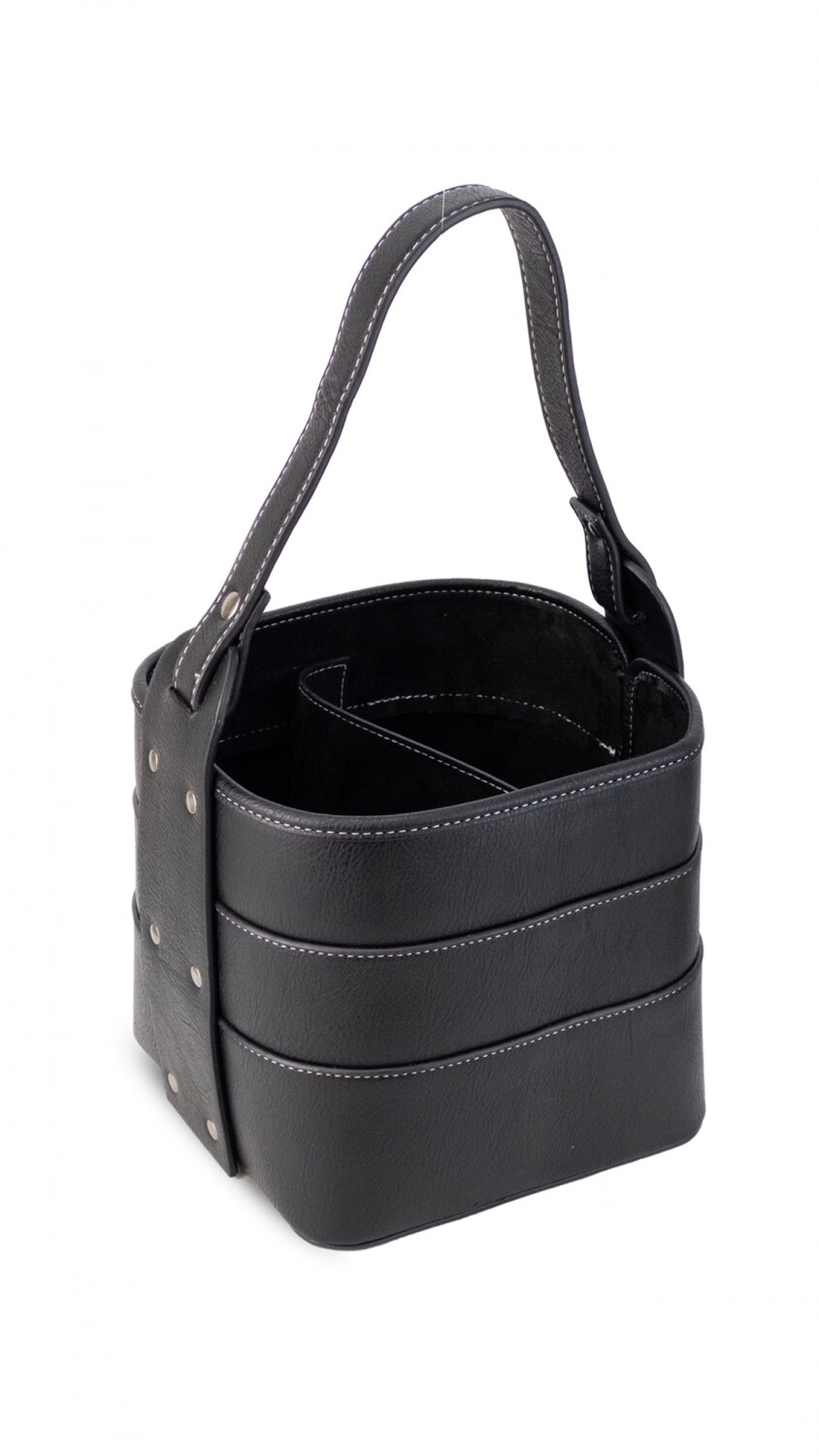 Posa termo en símil cuero, base firme con asa reforzada. Cuenta con una división al medio para mas comodidad.